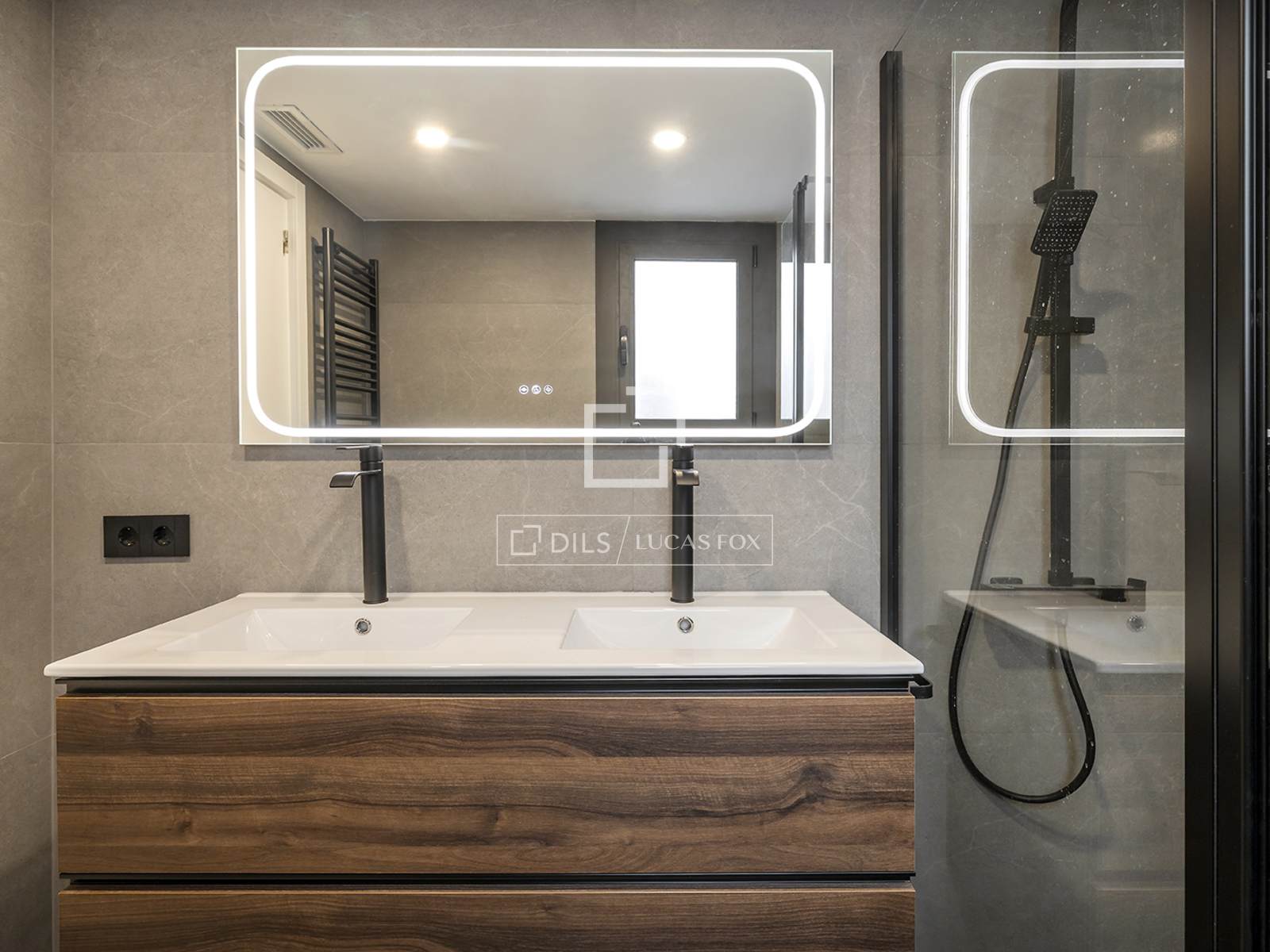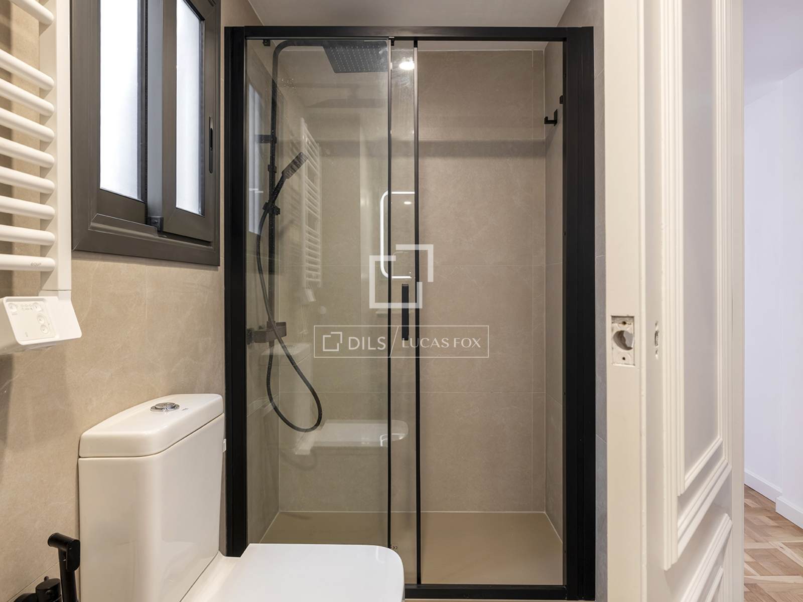 Un segundo baño completo, de diseño moderno con plato de ducha y mampara de vidrio, da servicio al resto de habitaciones.