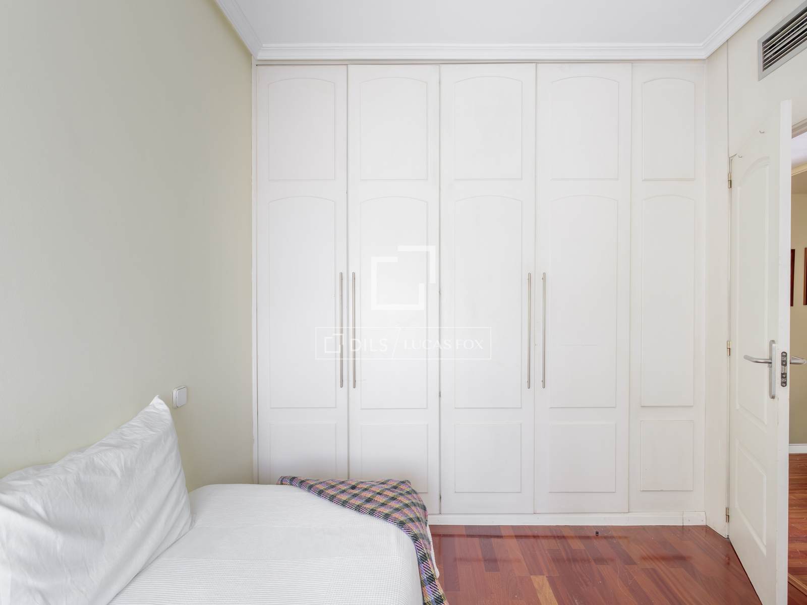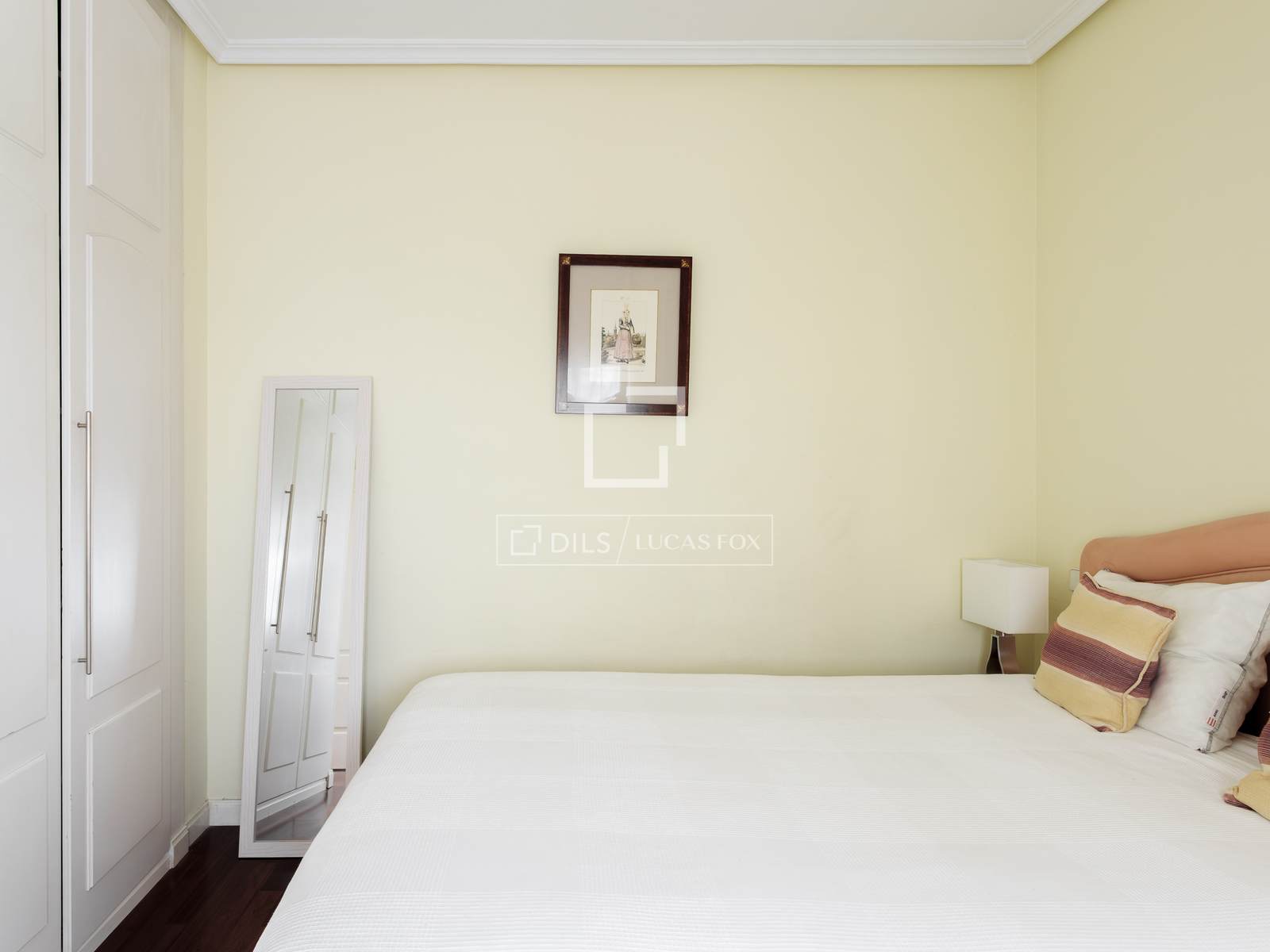 - Dormitorio principal, con cama de 140x190, amplio, elegante y con excelente capacidad de almacenaje gracias a sus dos cuerpos de armario de suelo a techo.