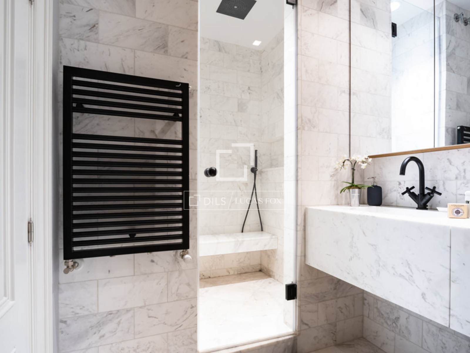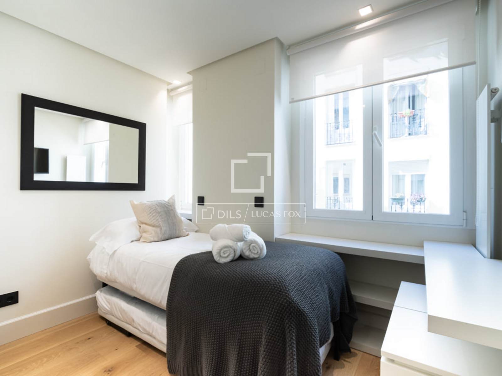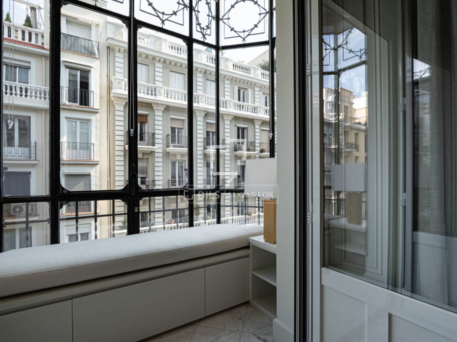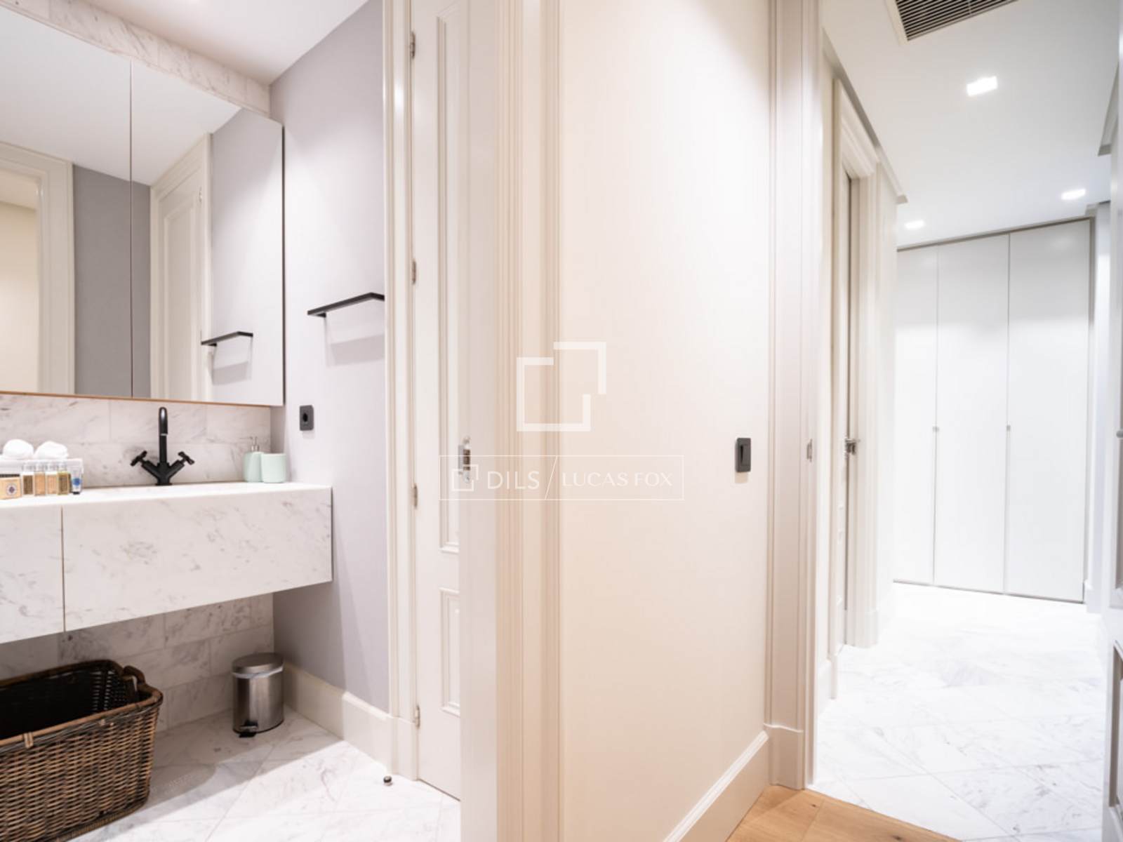 Situado en el elegante y exclusivo barrio de Salamanca, en el corazón de una de las zonas más cotizadas de Madrid, donde predominan elegantes edificios con fachadas señoriales, calles arboladas, y una selección de los mejores restaurantes, cafés y comercios de la ciudad. Es un piso totalmente reformado, ubicado en una 4ª planta exterior con un balcón muy acogedor a la calle. La decoración es de estilo contemporáneo moderna, minimalista, en donde destacan tonos suaves, combinando perfectamente comodidad y buen gusto. Su interior resalta por la gran cantidad de luz natural que entra por los ventanales del área social. Es un espacio idóneo para acoger hasta 4 personas. Al entrar a mano derecha se abre el salón/comedor con una gran sofá en cuero blanco, mesillas de centro, una TV pantalla plana de formato grande y dos butacas de diseño, una con su ottoman. El comedor tiene una mesa de madera para 8 personas, un aparador moderno que esconde una nevera de vinos y espejos que reflejan la luz y dan sensación de mucha amplitud. A la izquierda de la entrada se accede a la cocina y dormitorios. Esta área cuenta con armarios que esconden la lavadora, secadora y utensilios de limpieza. A la izquierda se encuentra el segundo dormitorio y un pasillo a la derecha nos lleva al segundo baño y al fondo, al dormitorio principal con su baño en suite. La cocina, en colores gris y marrón, cuenta con un elegante tope en mármol oscuro y muebles modernos empotrados. Está completamente equipada con electrodomésticos de última generación, menaje y utensilios necesarios. El dormitorio principal cuenta con una cama grande (1.80×2.00m) cabeceros de tela, mesillas de noche y amplios armarios empotrados que esconden una TV plana grande. Tiene un ventanal que le da mucha luz. El cuarto de baño tiene cabina acristalada con losa de mármol, dos lavamanos, y la zona del WC separada e independiente con una puerta. El segundo dormitorio cuenta con dos camas individuales en nido, con mesilla de noche y armarios empotrados. Ambos dormitorios dan a un patio trasero amplio y tranquilo. Todo el piso cuenta con doble vidrio en las ventanas para aislar completamente el ruido de la ciudad, y suelo de madera a excepción de losa en los baños.