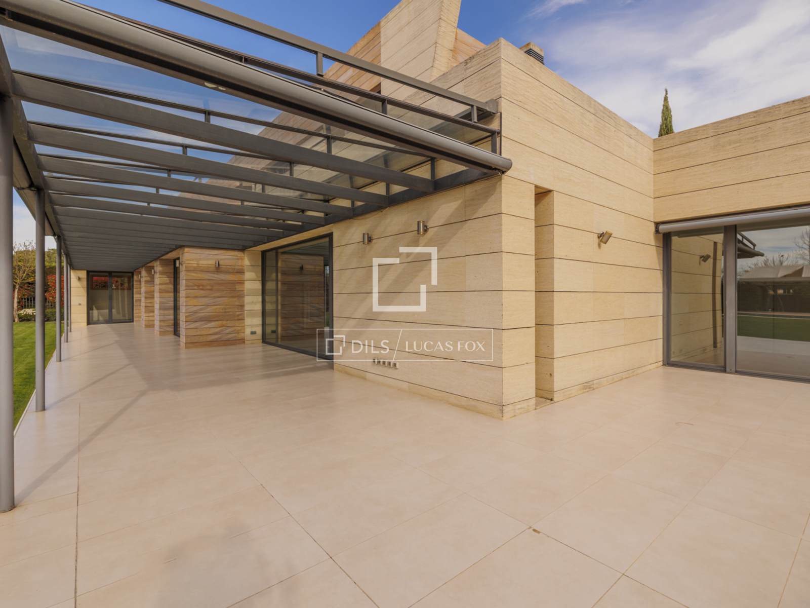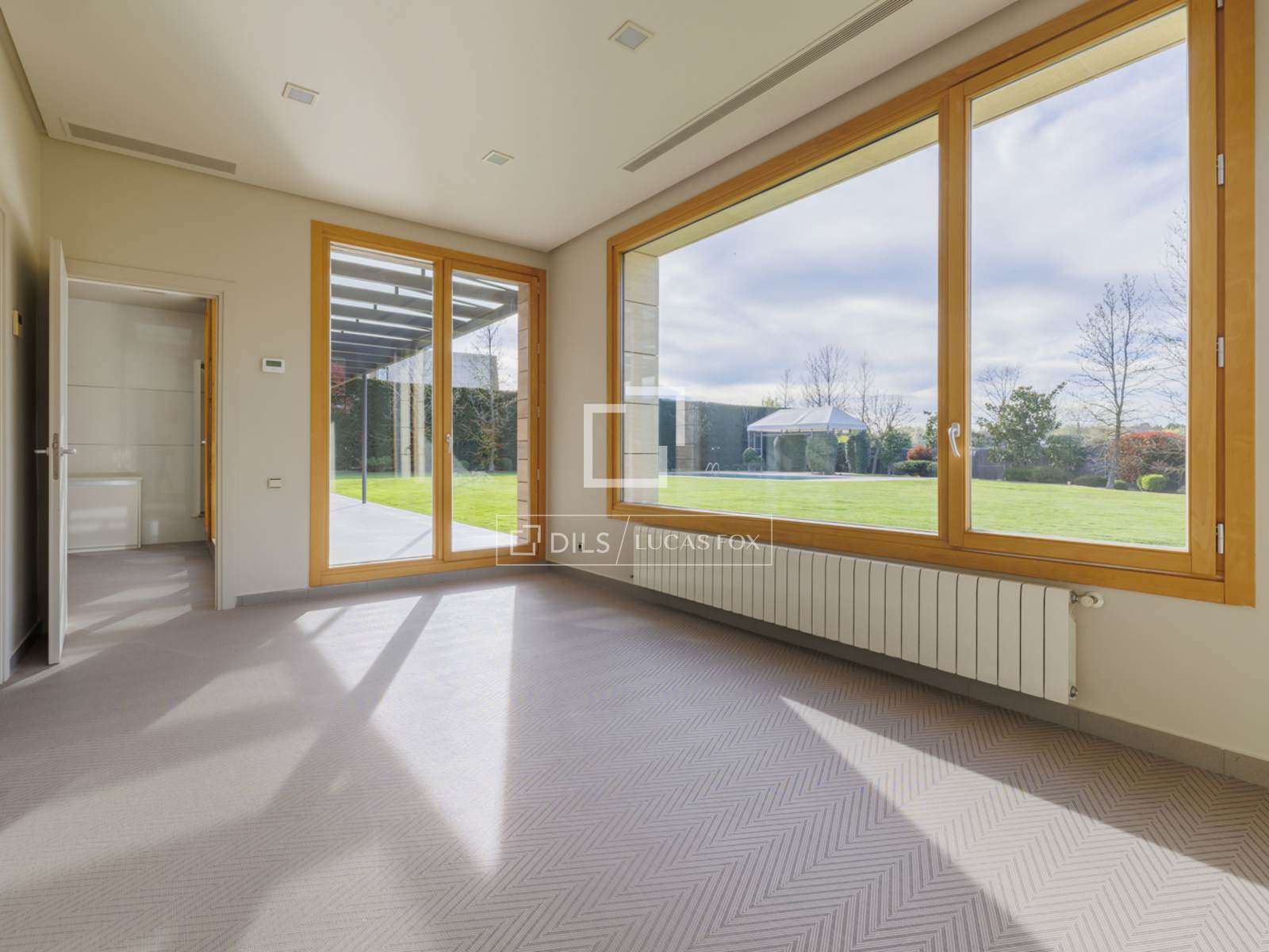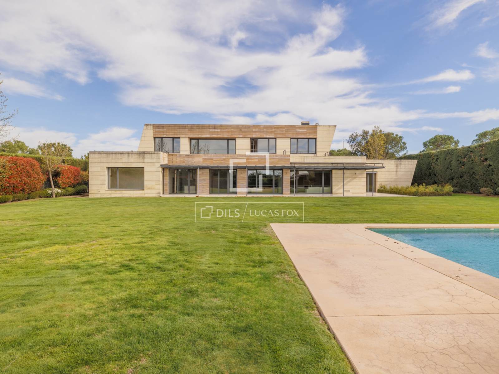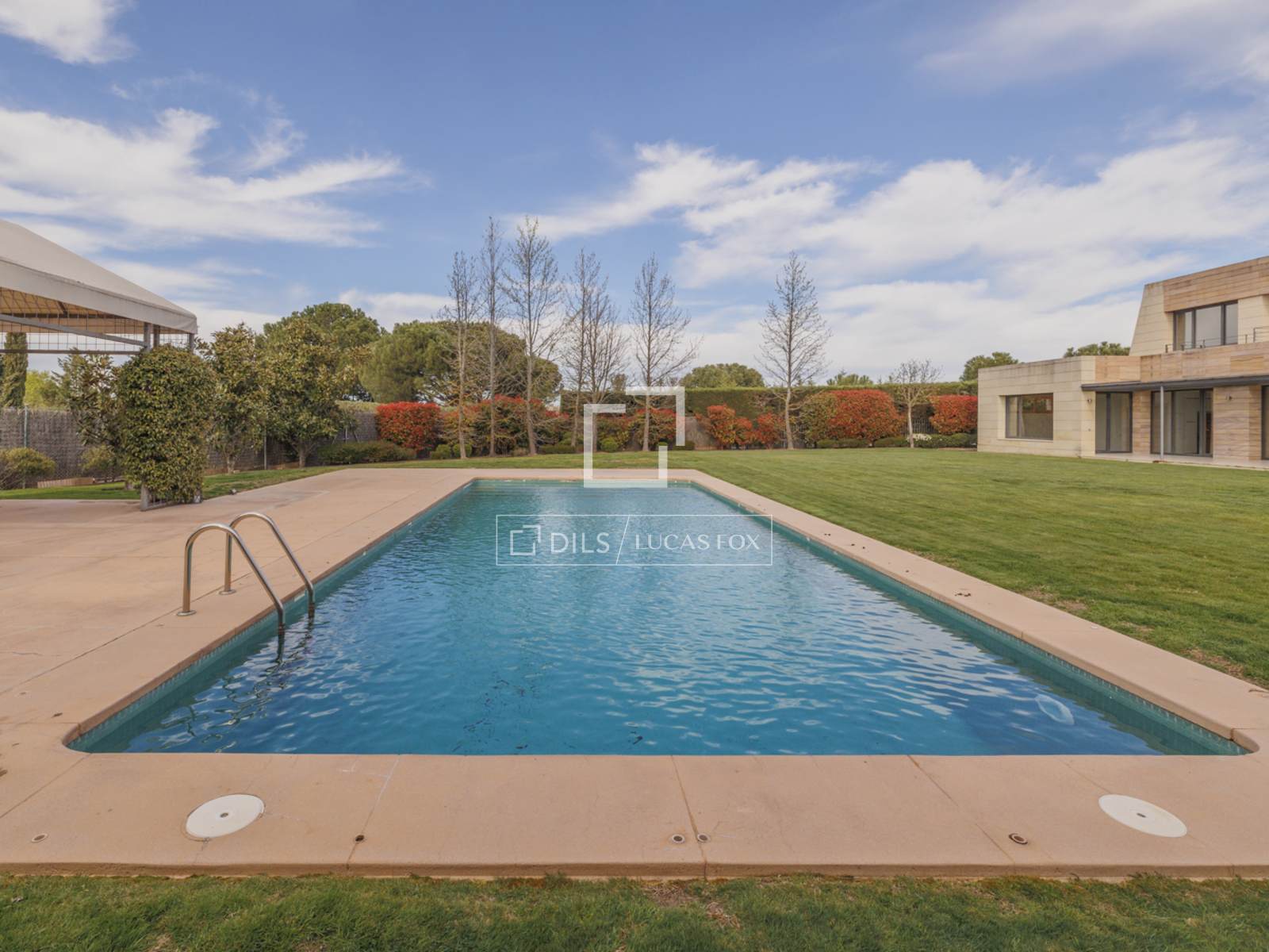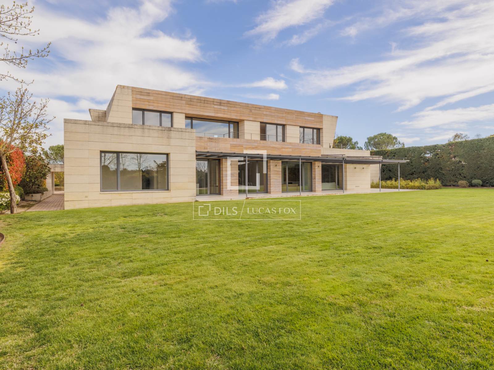 Exclusiva villa en alquiler en La Finca, reformada y ampliada, con 8 dormitorios, amplias zonas de día con salida al jardín, piscina privada, zona de servicio independiente y garaje para 6 coches, en una de las urbanizaciones más prestigiosas de Madrid.