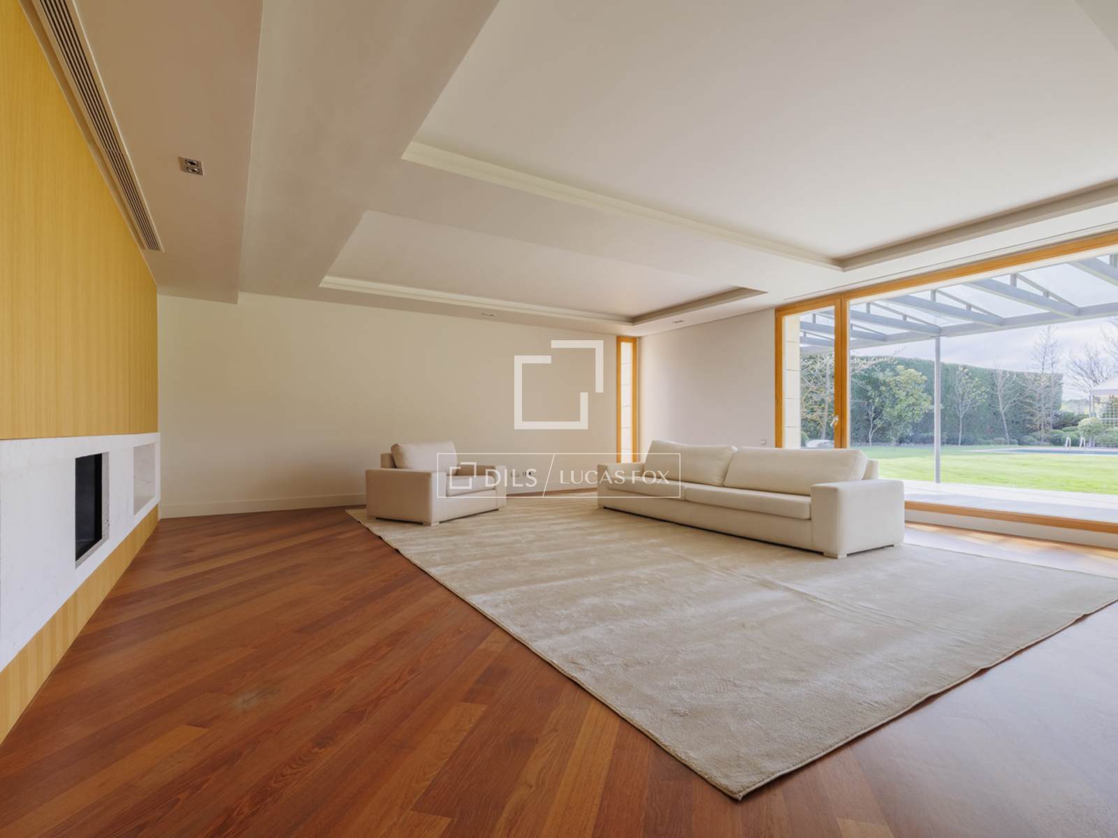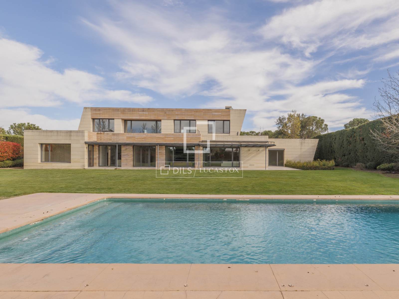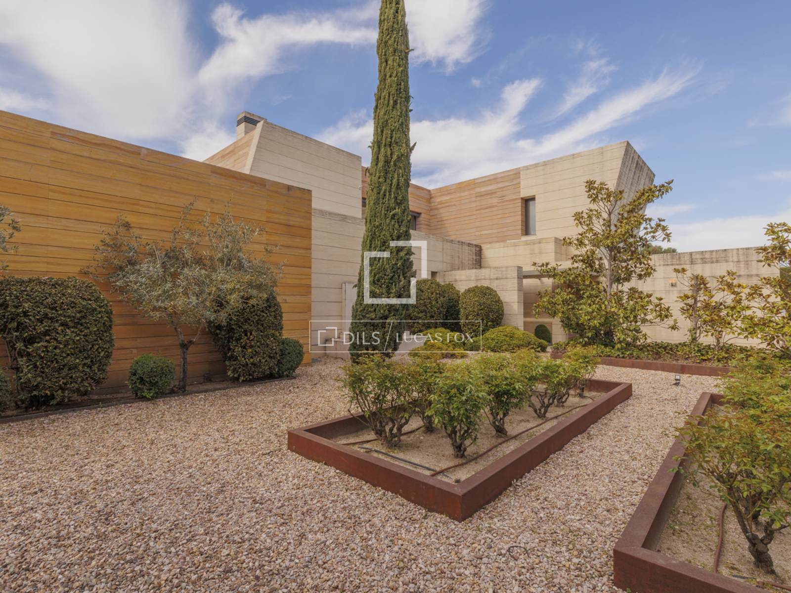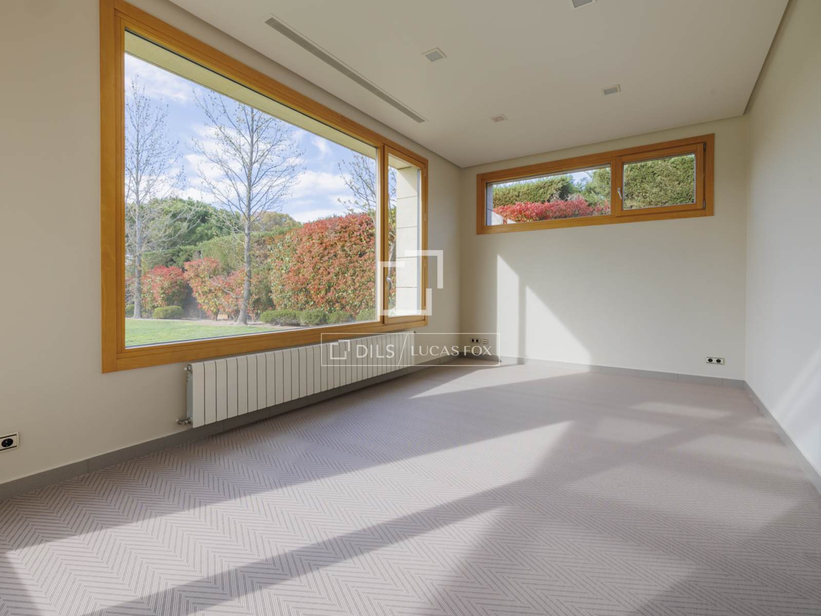 Exclusiva villa en alquiler en La Finca, reformada y ampliada, con 8 dormitorios, amplias zonas de día con salida al jardín, piscina privada, zona de servicio independiente y garaje para 6 coches, en una de las urbanizaciones más prestigiosas de Madrid.