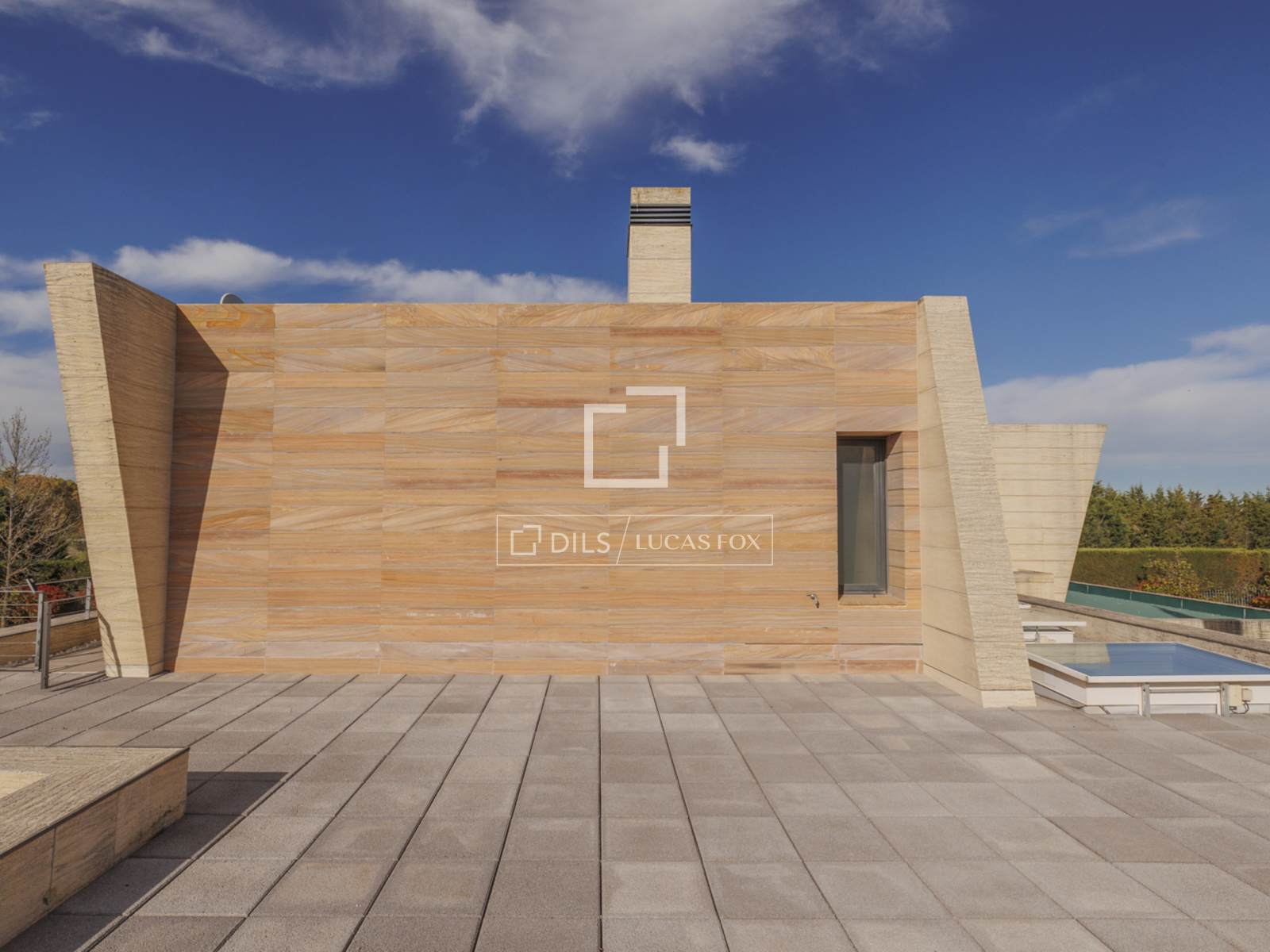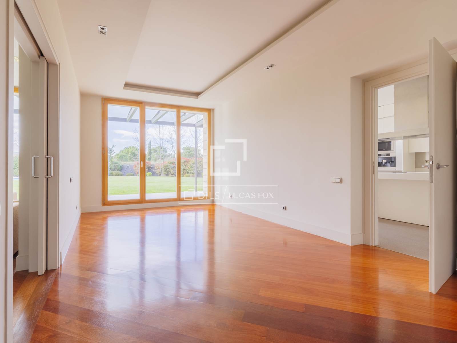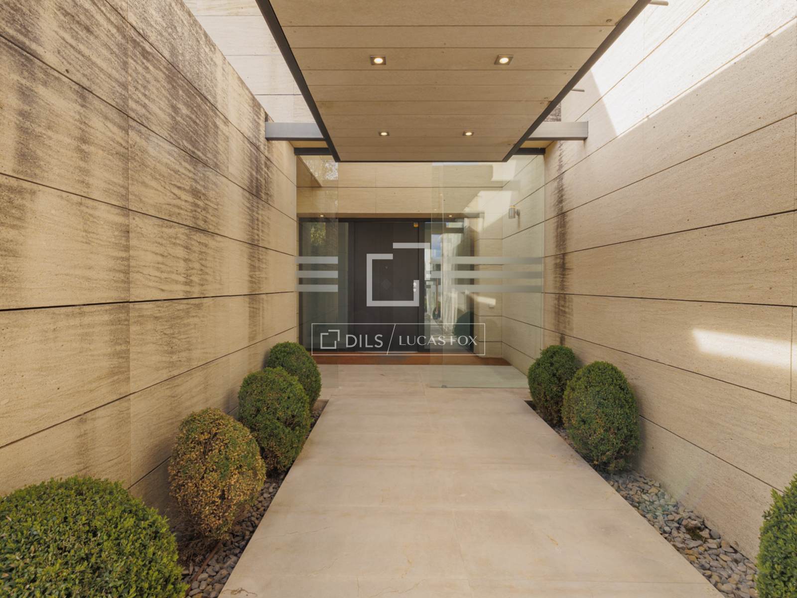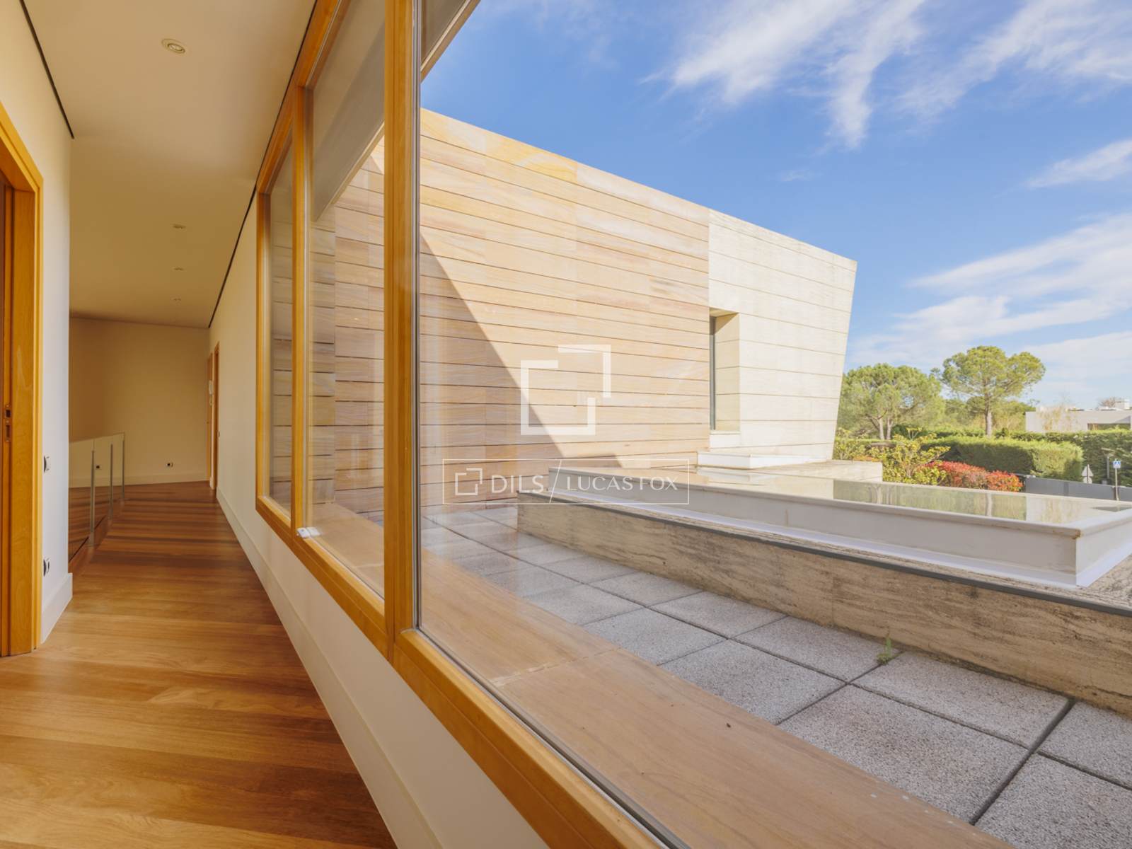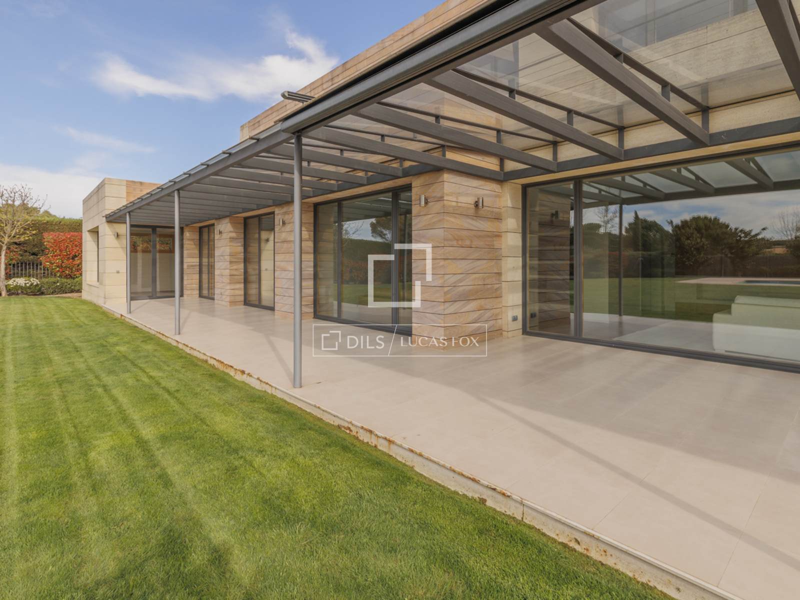 Exclusiva villa en alquiler en La Finca, reformada y ampliada, con 8 dormitorios, amplias zonas de día con salida al jardín, piscina privada, zona de servicio independiente y garaje para 6 coches, en una de las urbanizaciones más prestigiosas de Madrid.