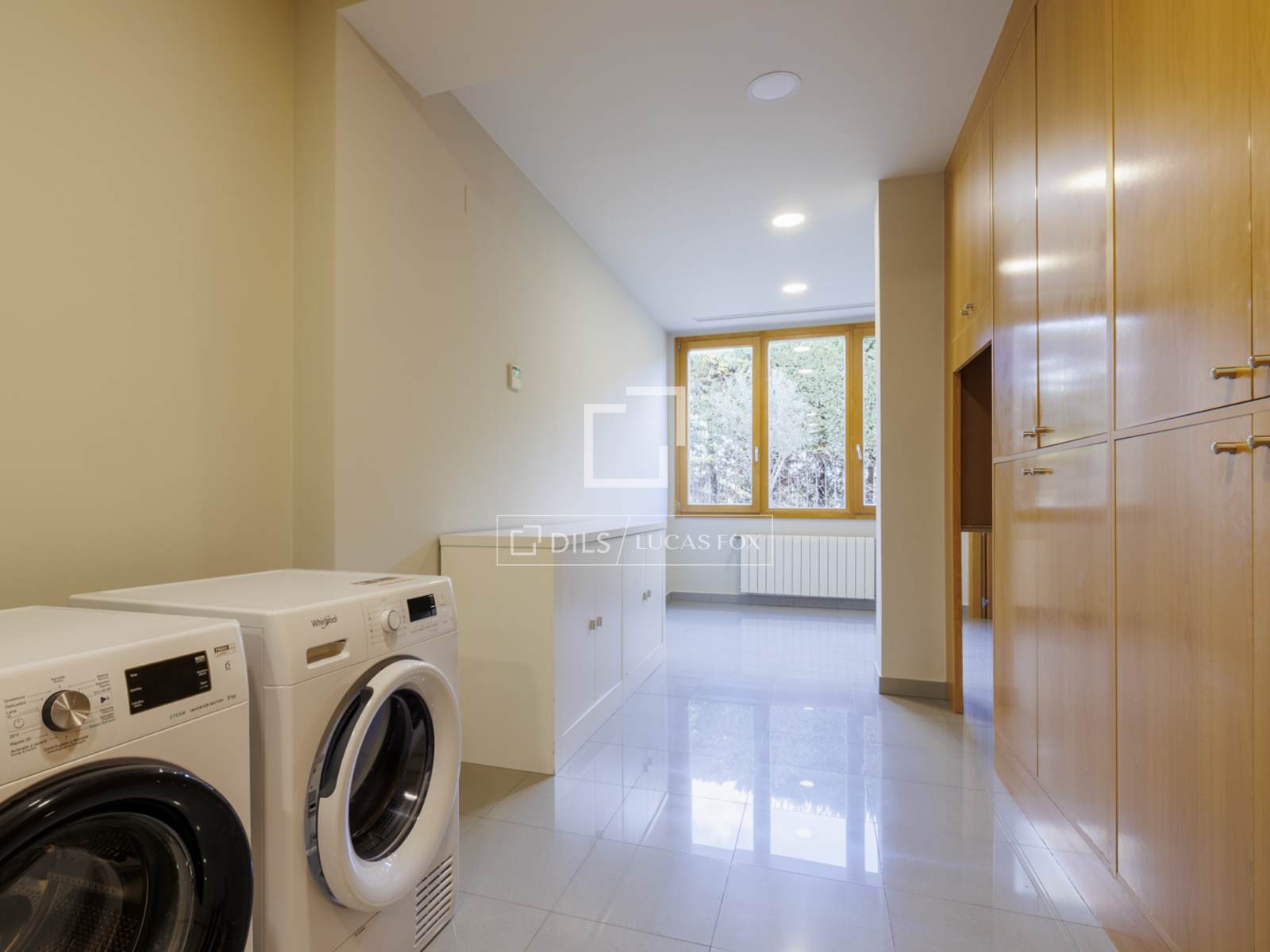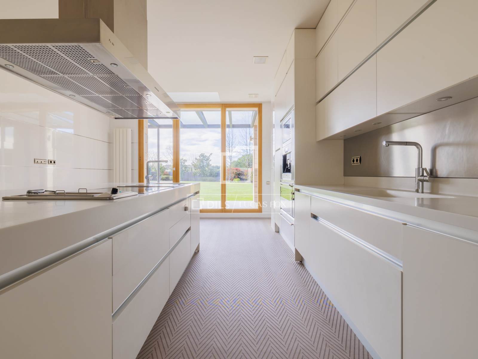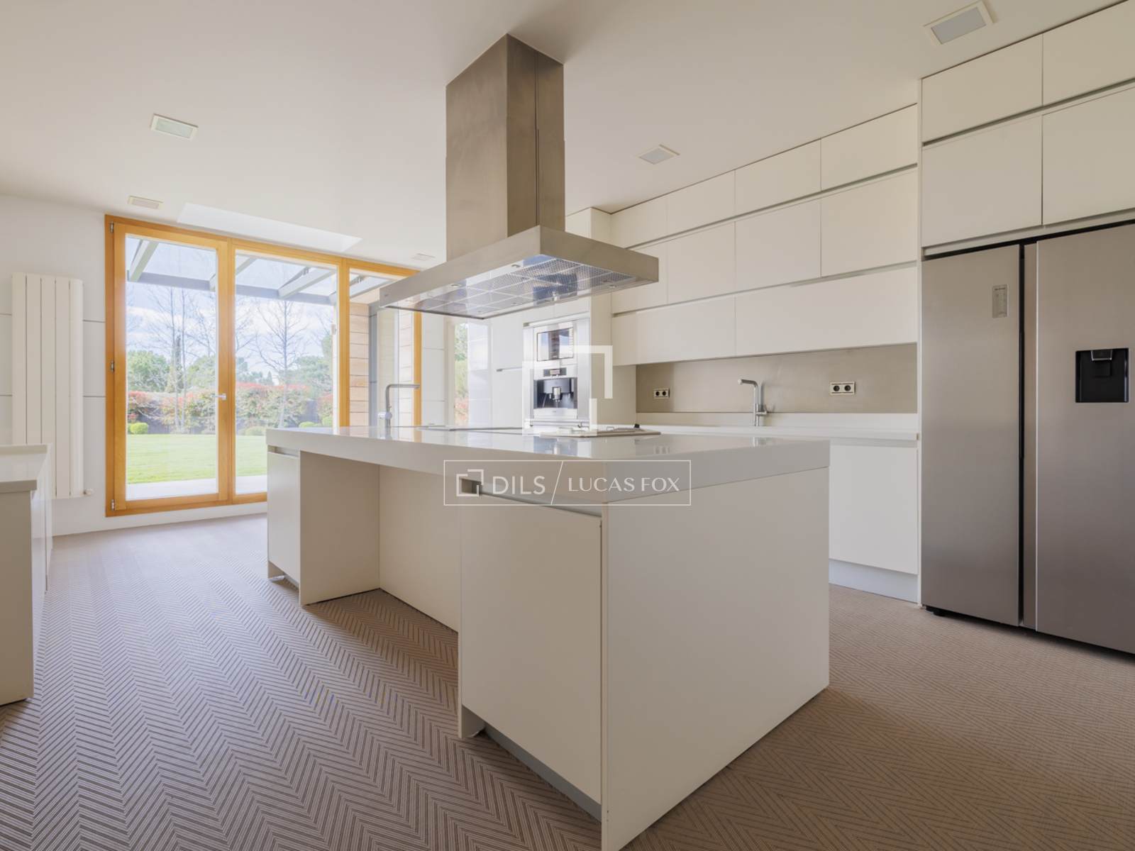 En la planta principal, un elegante hall de entrada da paso a un amplio salón, comedor y cocina, todos ellos con acceso directo al jardín, lo que aporta una gran sensación de continuidad entre interior y exterior. La zona de cocina ha sido objeto de una cuidada ampliación, incorporando un nuevo comedor diario, una espaciosa sala de juegos ideal para niños y una práctica zona de lavandería, diseñada para mayor comodidad.