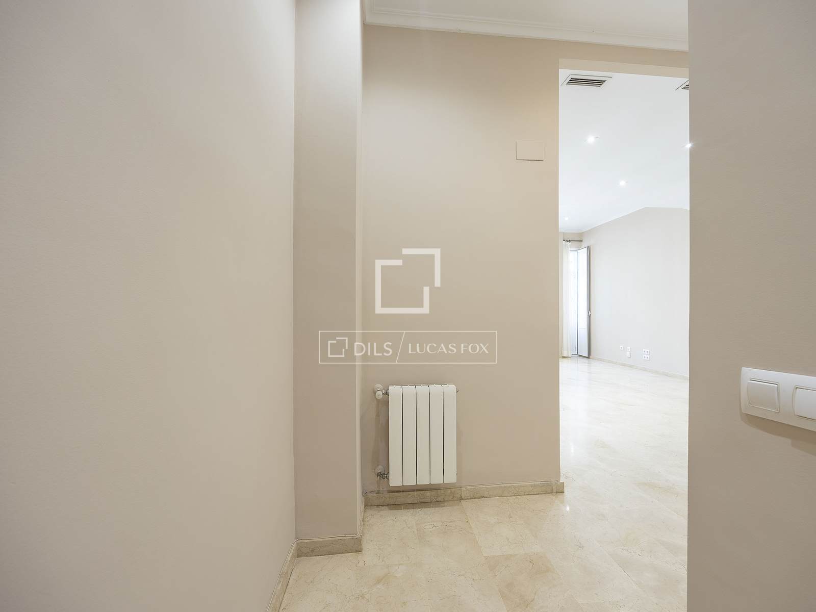 Al entrar, nos da la bienvenida un amplio salón-comedor de planta rectangular y con baño completo, con abundante luminosidad gracias a tres ventanales que dan a un pequeño balcón con vistas a Conde de Altea, una calle arbolada con mucho encanto, repleta de comercios y restaurantes con mucha vida.