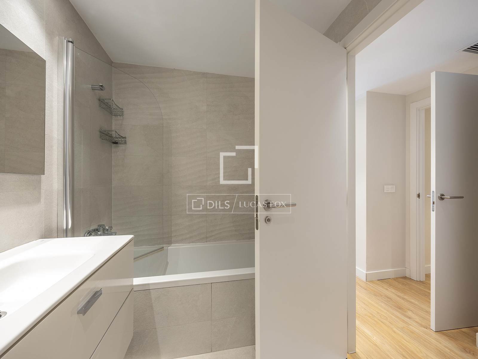 La vivienda dispone de 128 m² construidos y 107 m² útiles, con una distribución funcional y equilibrada que potencia la amplitud y la luminosidad en cada estancia. Cuenta con dos dormitorios y dos baños completos, diseñados con líneas actuales y materiales de calidad.