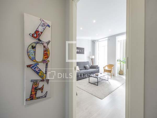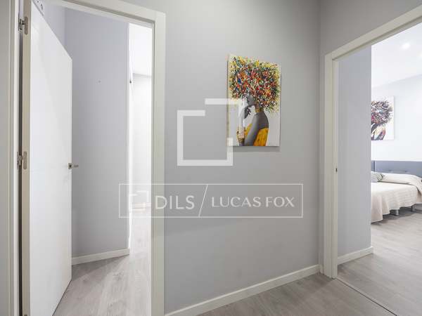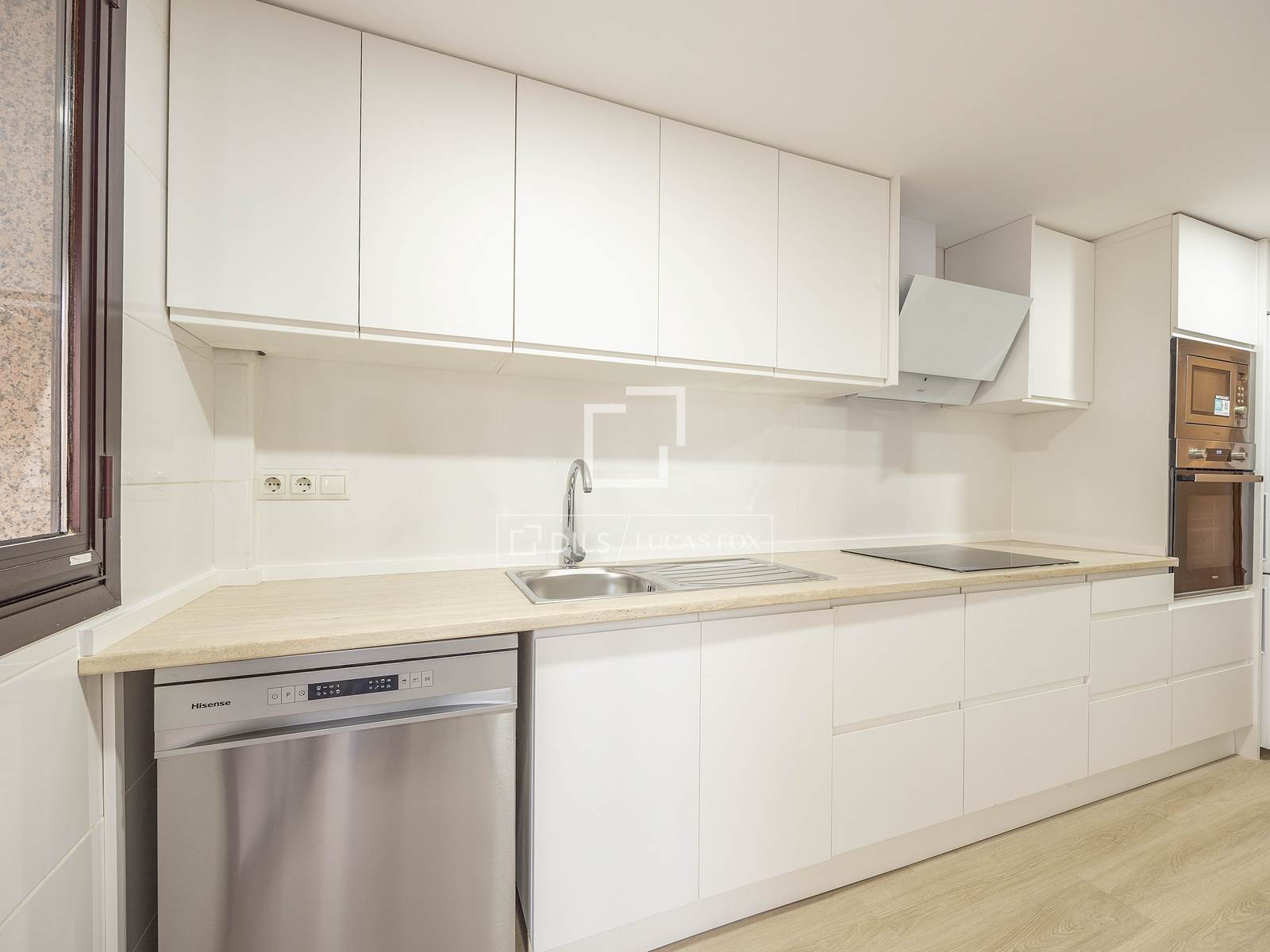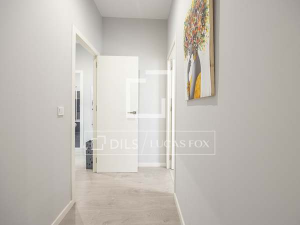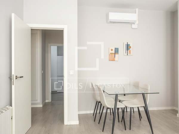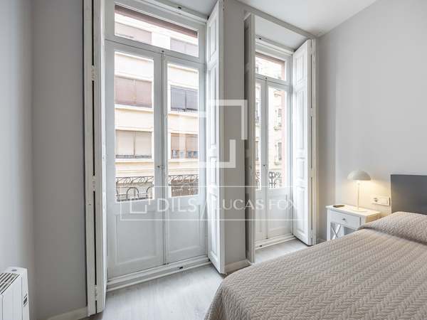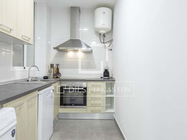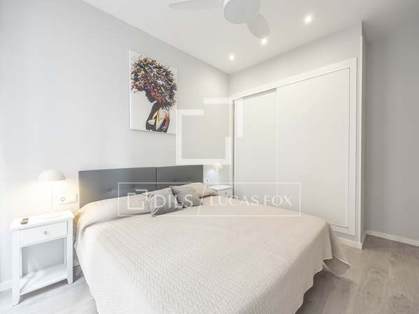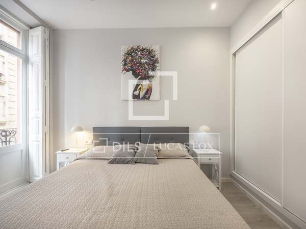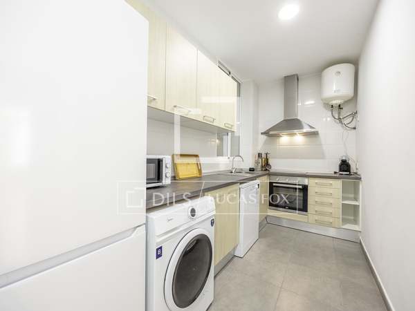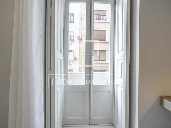 Apartamento de 110m con amplios salón comedor, cocina totalmente equipada con todos los electrodomésticos, dos habitaciones uno de ellos con baño en suite y otro baño completo, sin amueblar en una de las calles más tranquilas del barrio de San Francesc