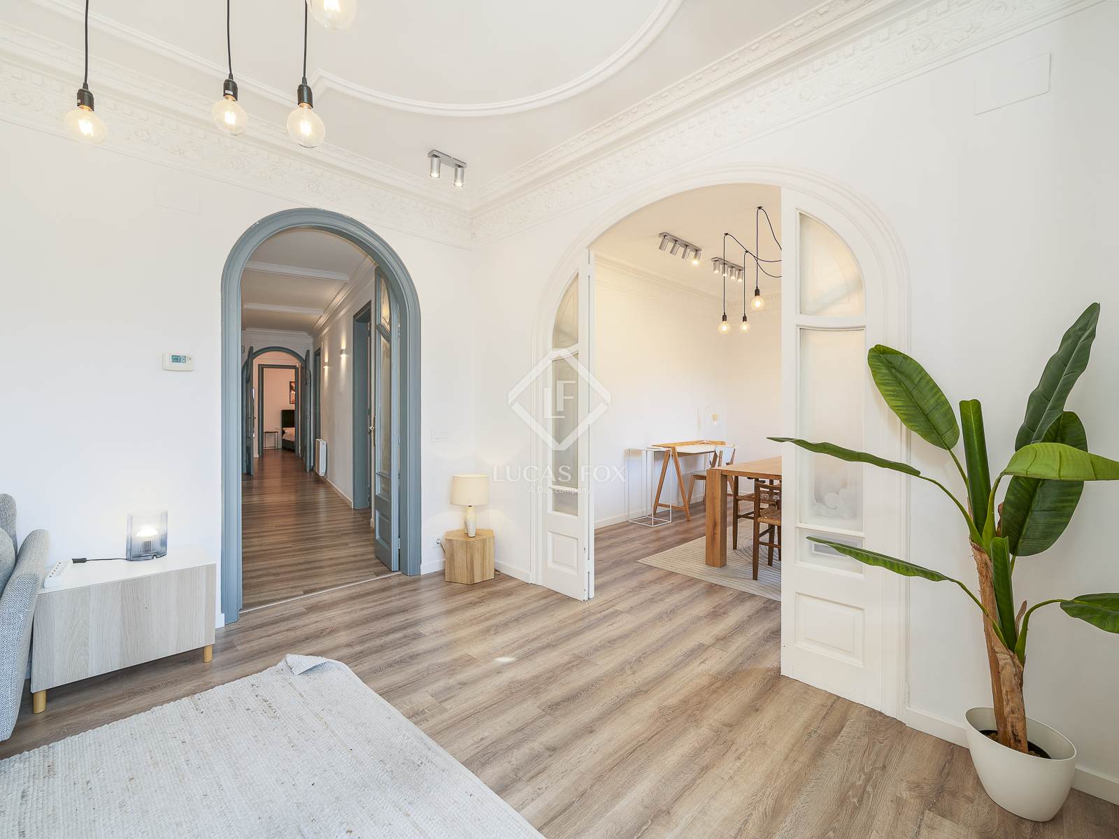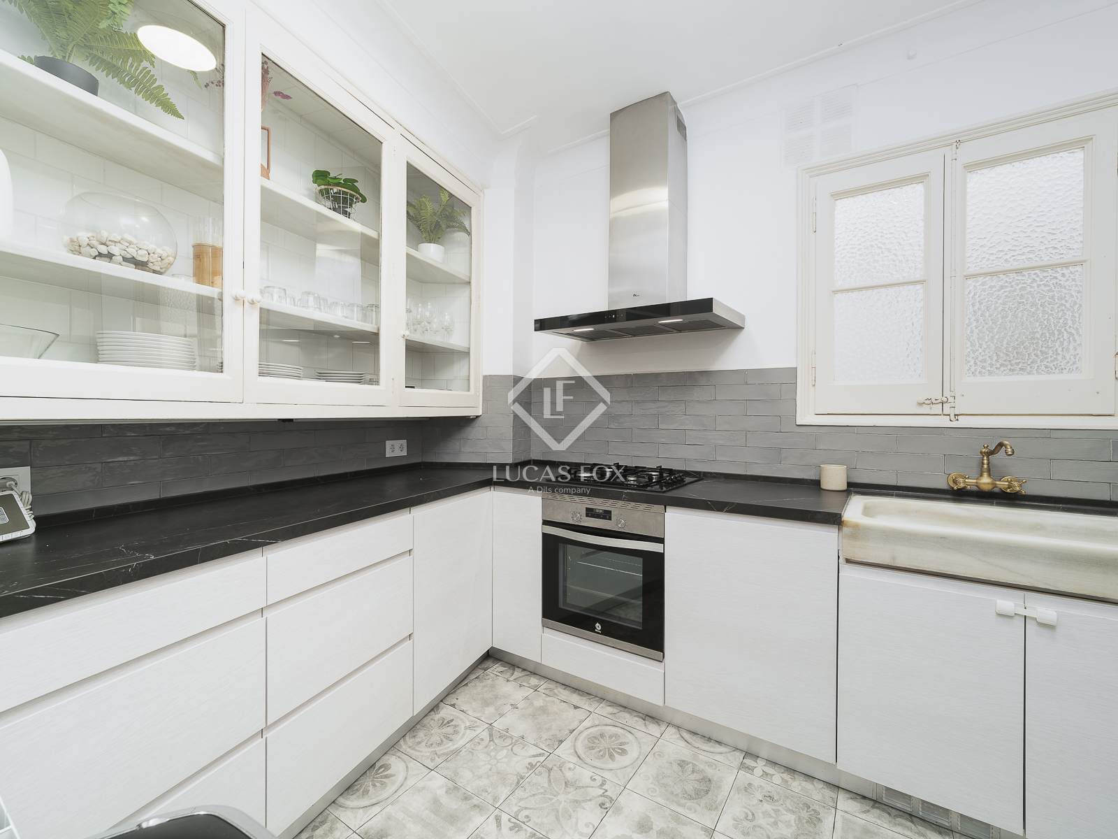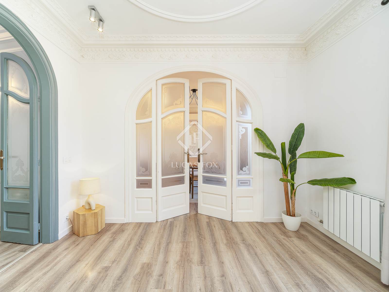 El piso se presenta con una reforma de alta calidad en la que se han combinado sus elementos originales, recuperados y conservados con sumo cuidado, con un diseño de interior moderno. Así pues, se ha creado un maravilloso piso de estancias amplias y luminosas de techos altos que disfruta de un estilo actual y sofisticado sin renunciar al estilo regio del edificio.