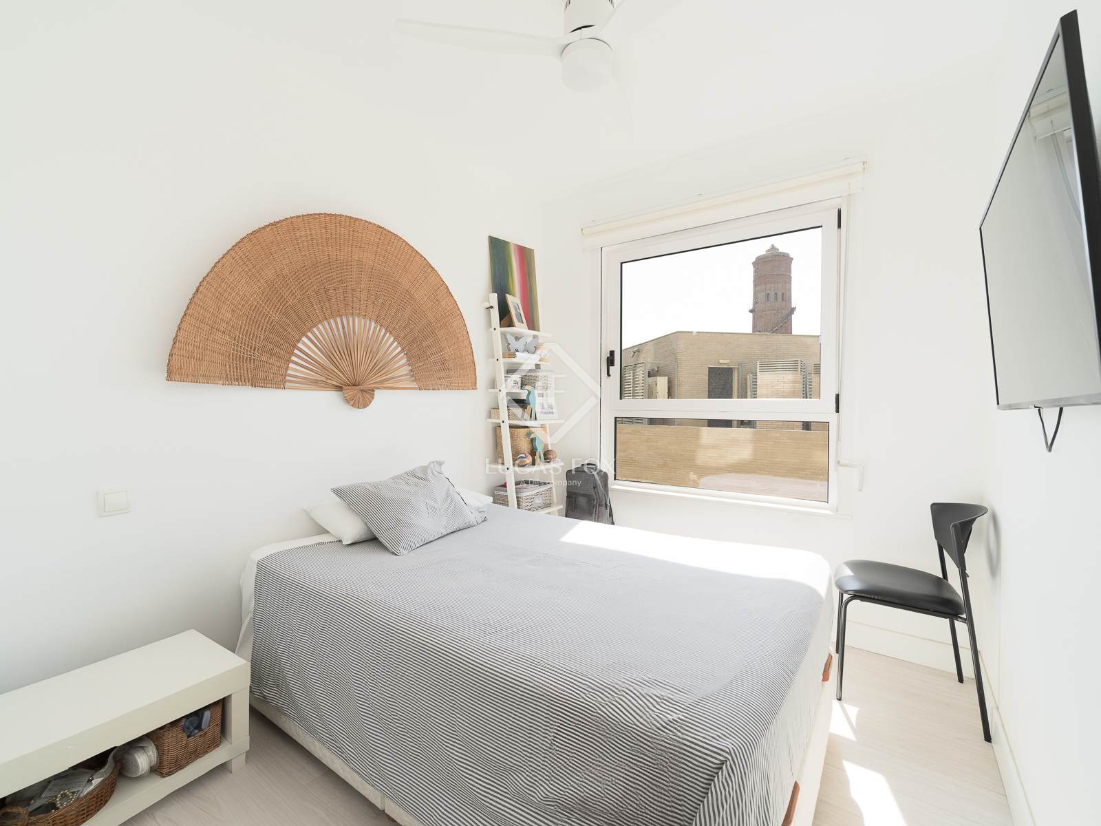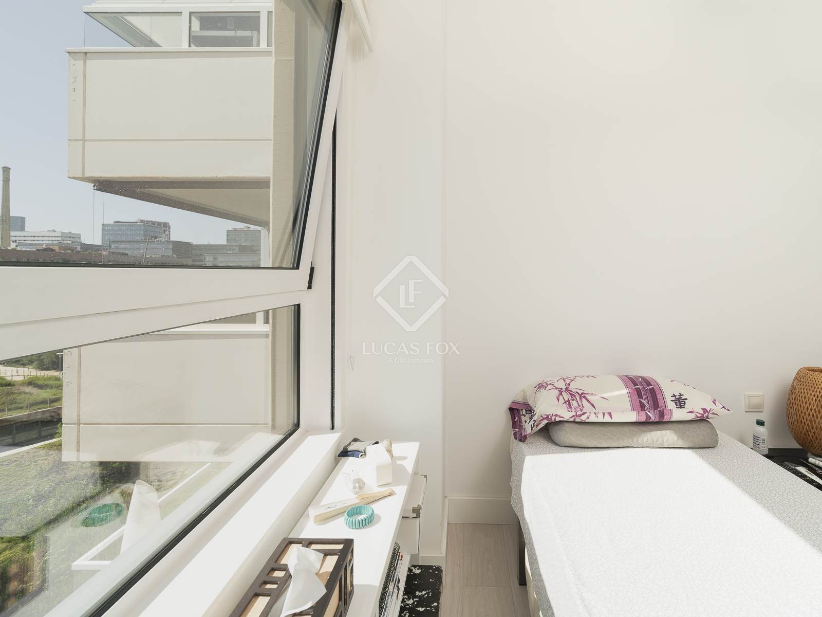 Este elegante piso de 136 m² cuenta con cuatro dormitorios y dos baños, y se ubica en el exclusivo complejo Illa del Bosc, en Diagonal Mar. Con una terraza orientada al sur, ofrece unas vistas espectaculares al mar, la playa y la ciudad.