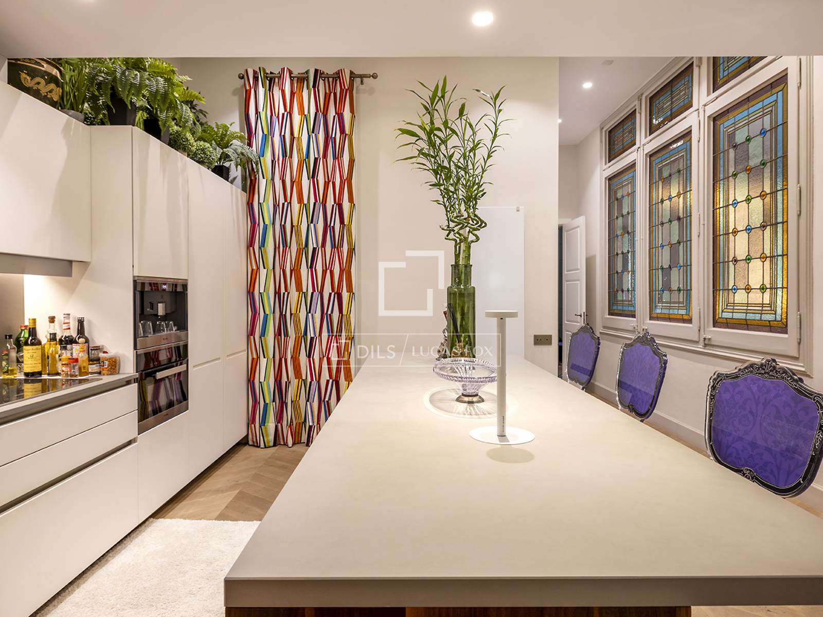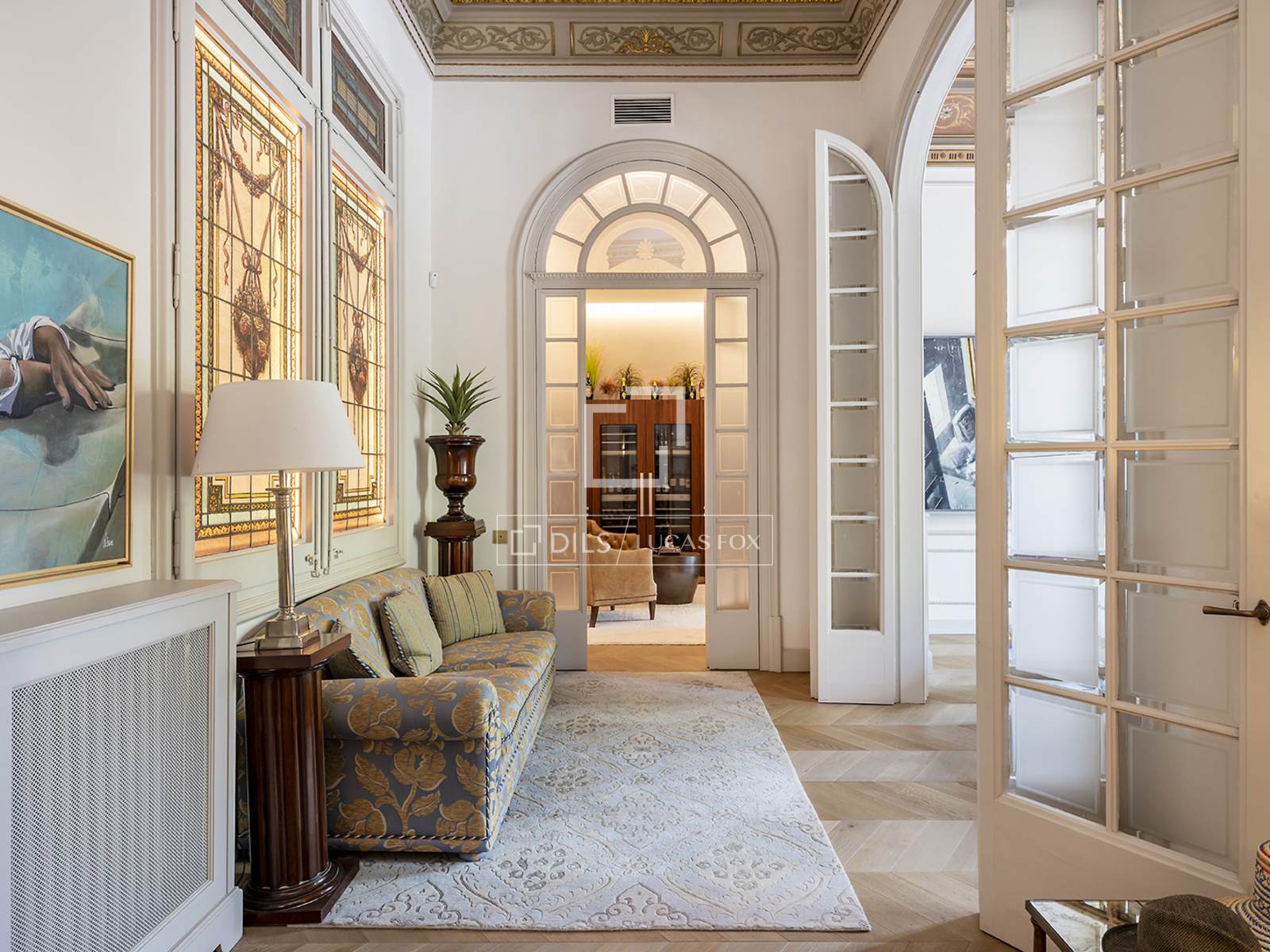El piso luce techos altos con intrincadas molduras originales que evocan el patrimonio arquitectónico del edificio, a la vez que realzan la sensación de espacio y grandeza. La luz natural penetra a raudales durante todo el día, iluminando cada estancia y realzando su diseño abierto y elegante.