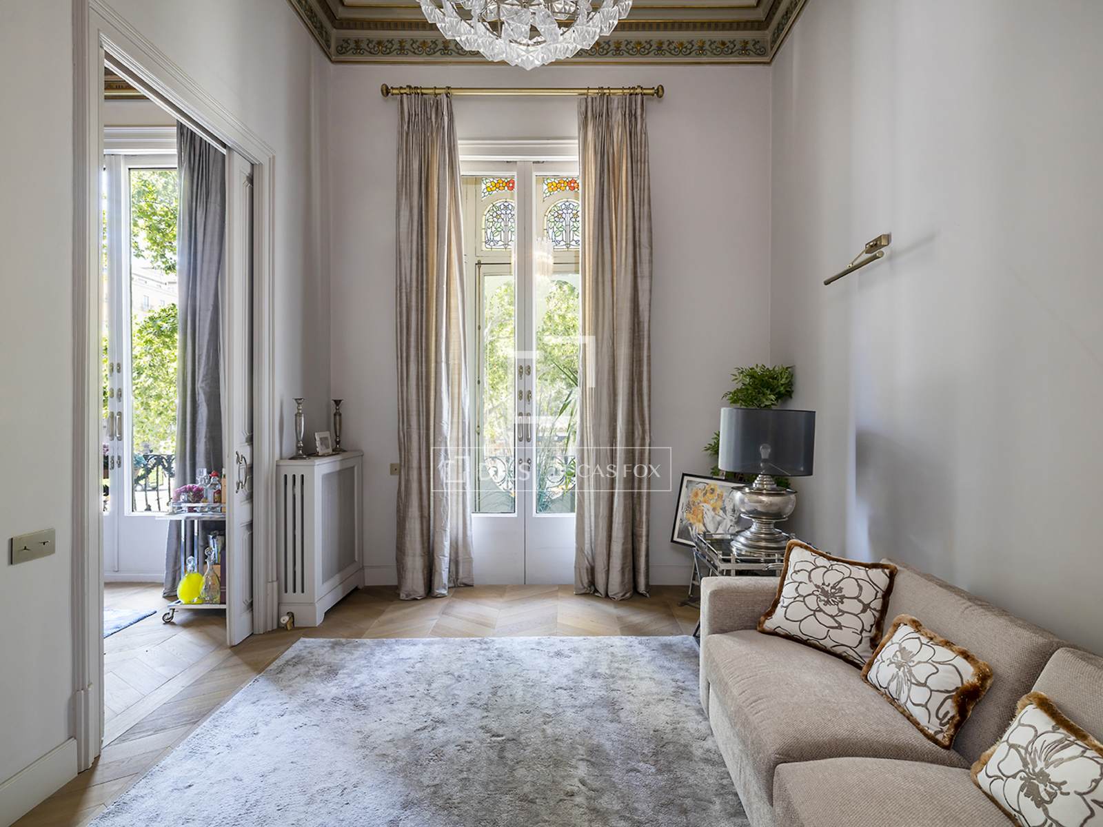 - Amplio salón de 32,62 m² con salida a balcón de 4,13 m² con vistas a Passeig de Gràcia.