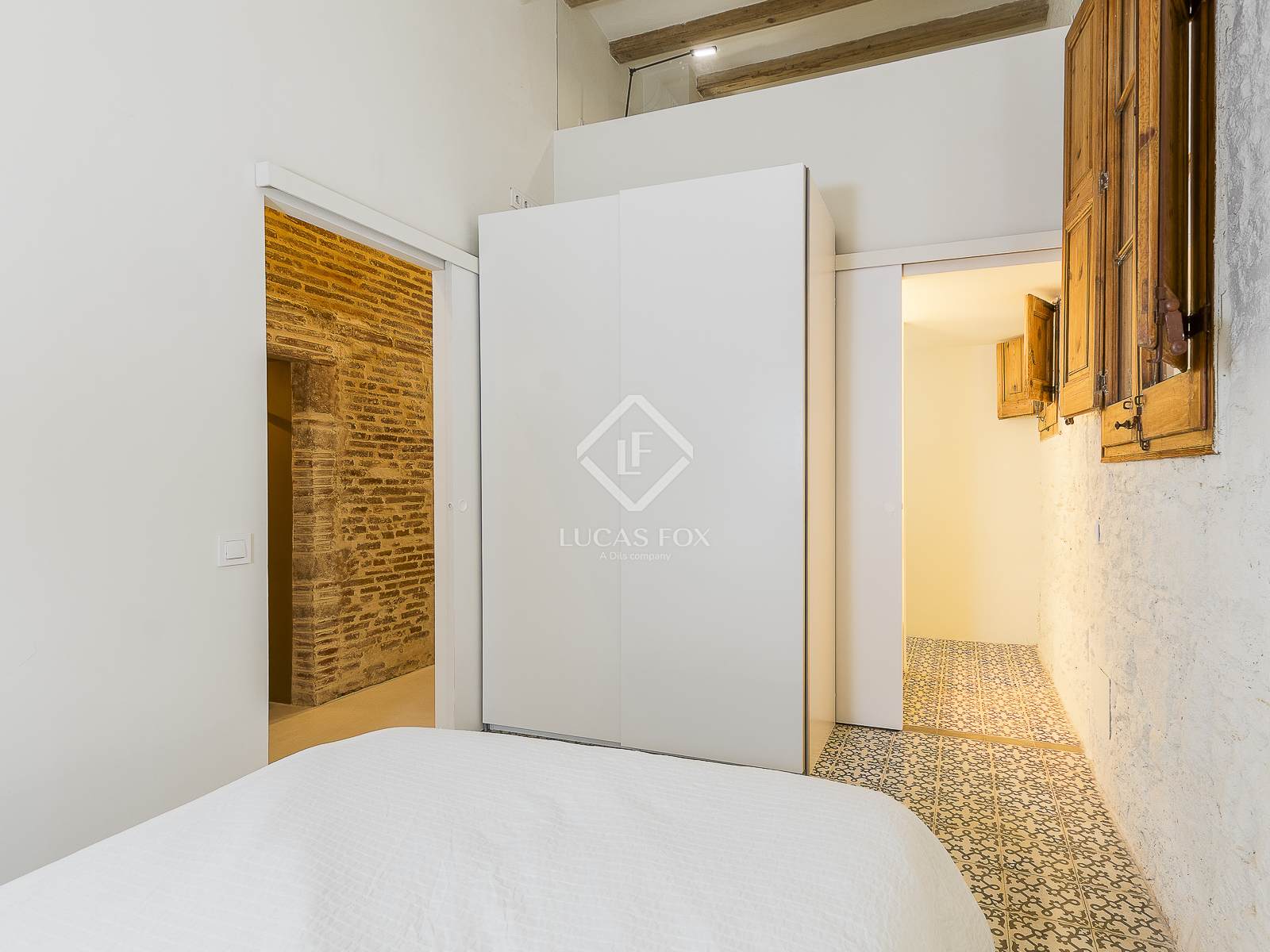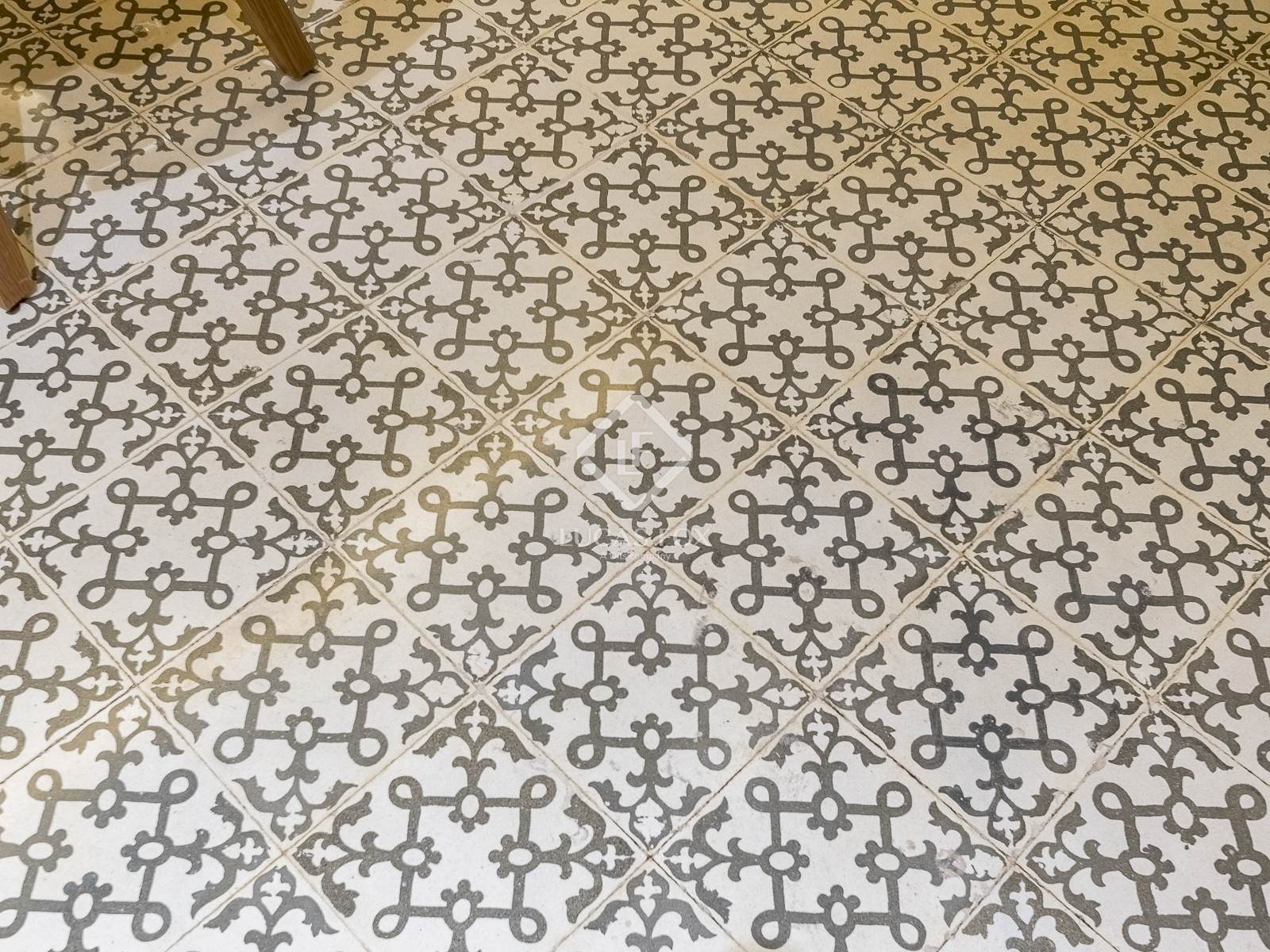 Los acabados son excepcionales; el suelo de mosaico, microcemento, las paredes de piedra vista y las vigas de madera originales crean un ambiente cálido y auténtico.