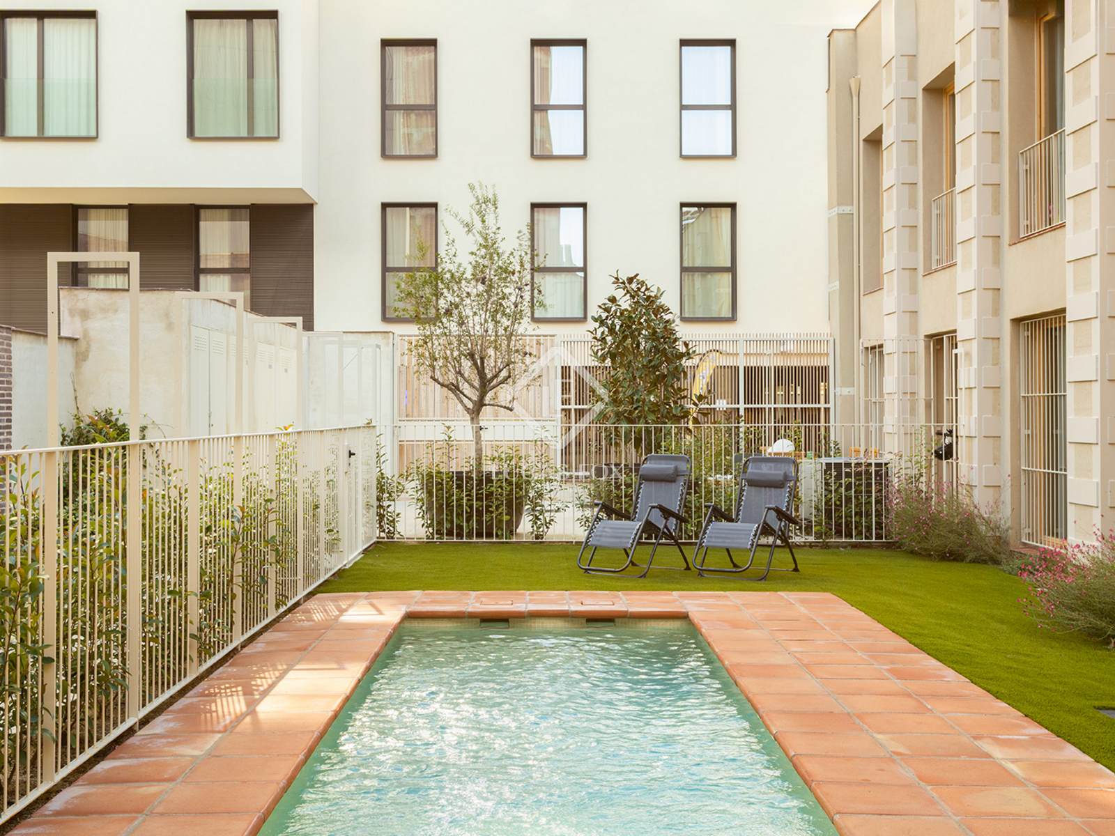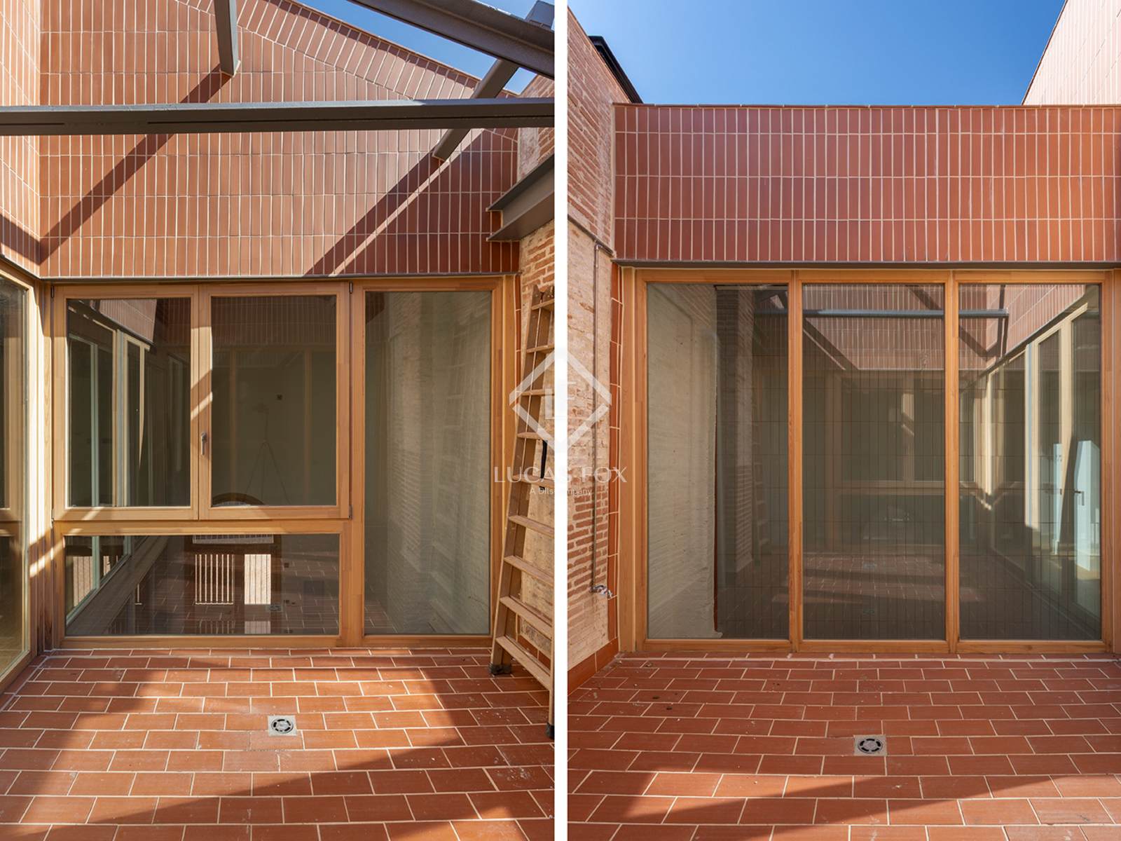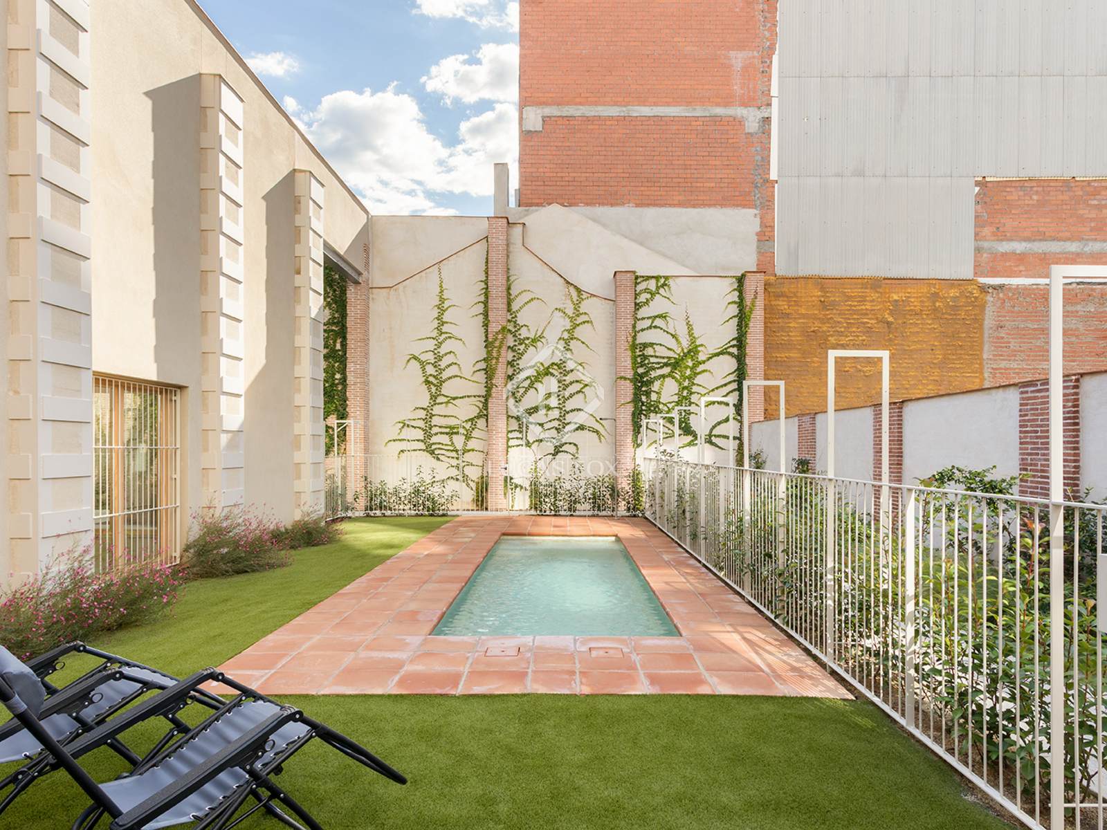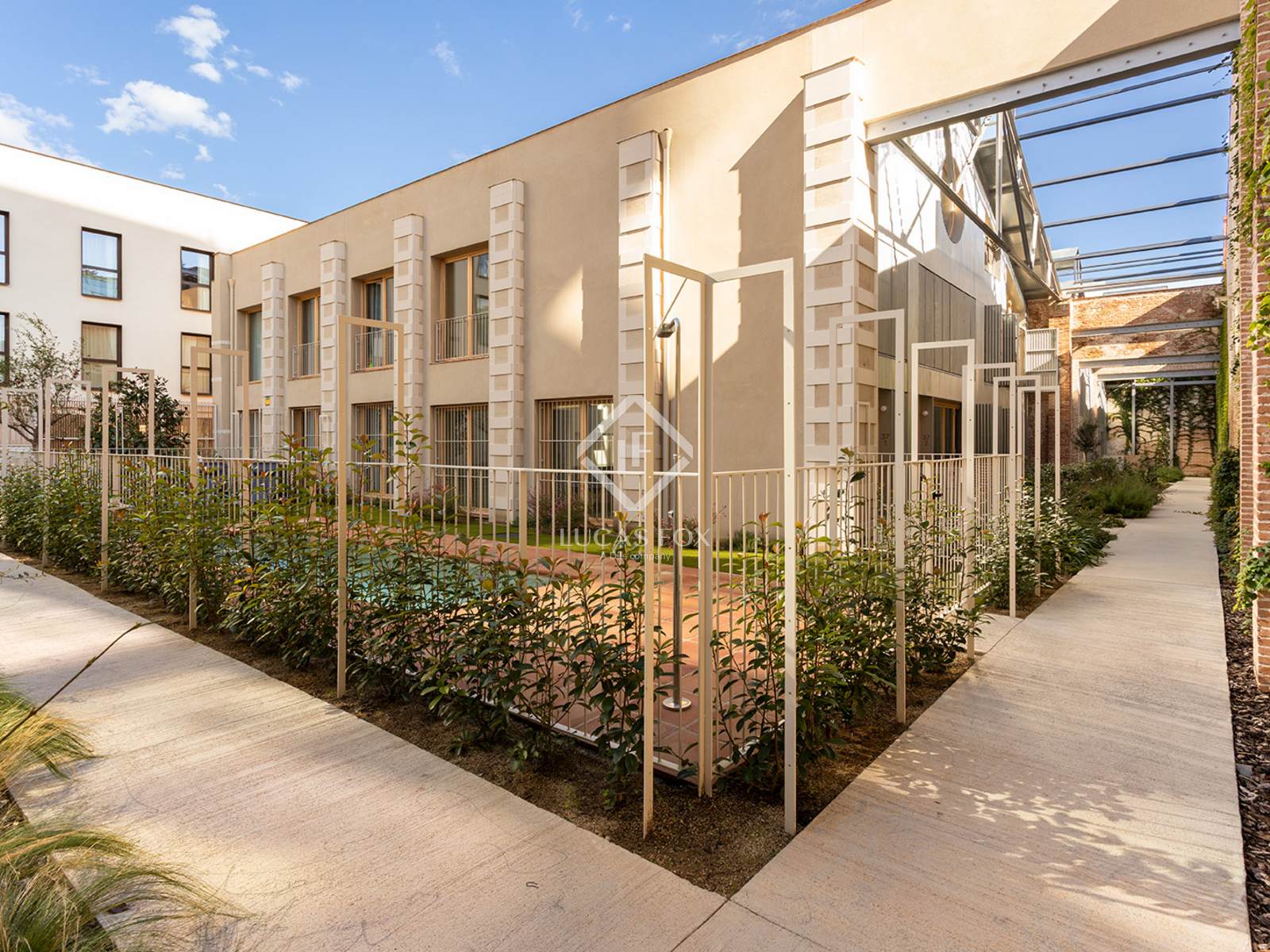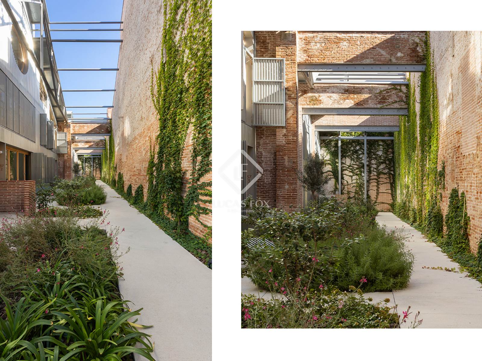 Este dúplex se sitúa en el edificio A, la construcción más amplia de todas y con una piscina comunitaria. Se beneficia de un diseño diáfano, con mucho carácter y personalidad, con un estilo moderno que conserva elementos representativos de la Barcelona Industrial.