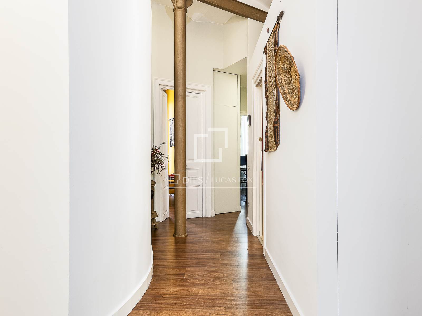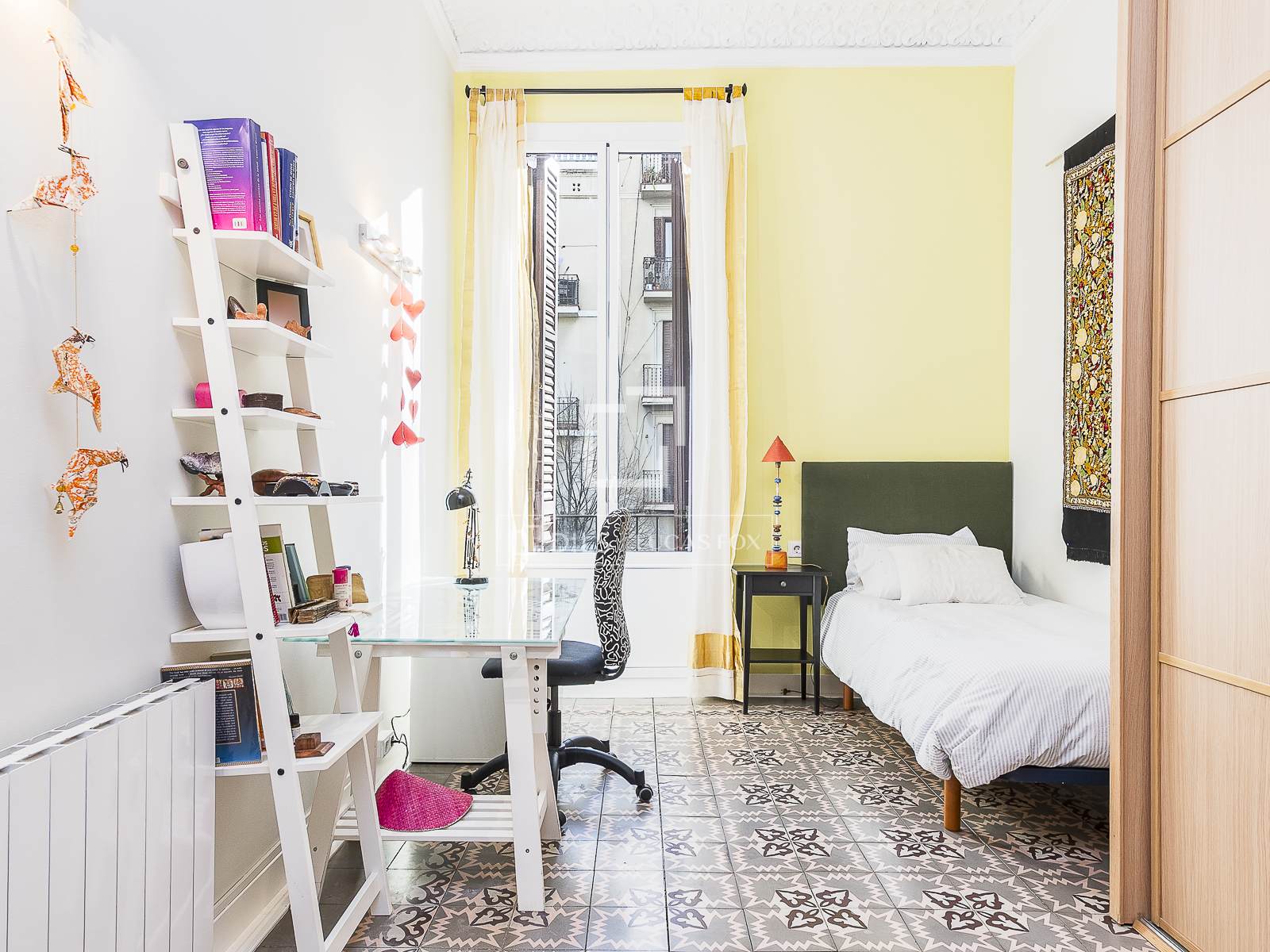 El interior conserva el encanto de las fincas antiguas con una estética cuidada y elegante. La distribución es funcional y generosa, con un amplio salón comedor con cocina integrada, ideal para la vida moderna. Dispone de cuatro habitaciones, además de una estancia adicional perfecta como despacho o zona de trabajo, y dos baños completos.