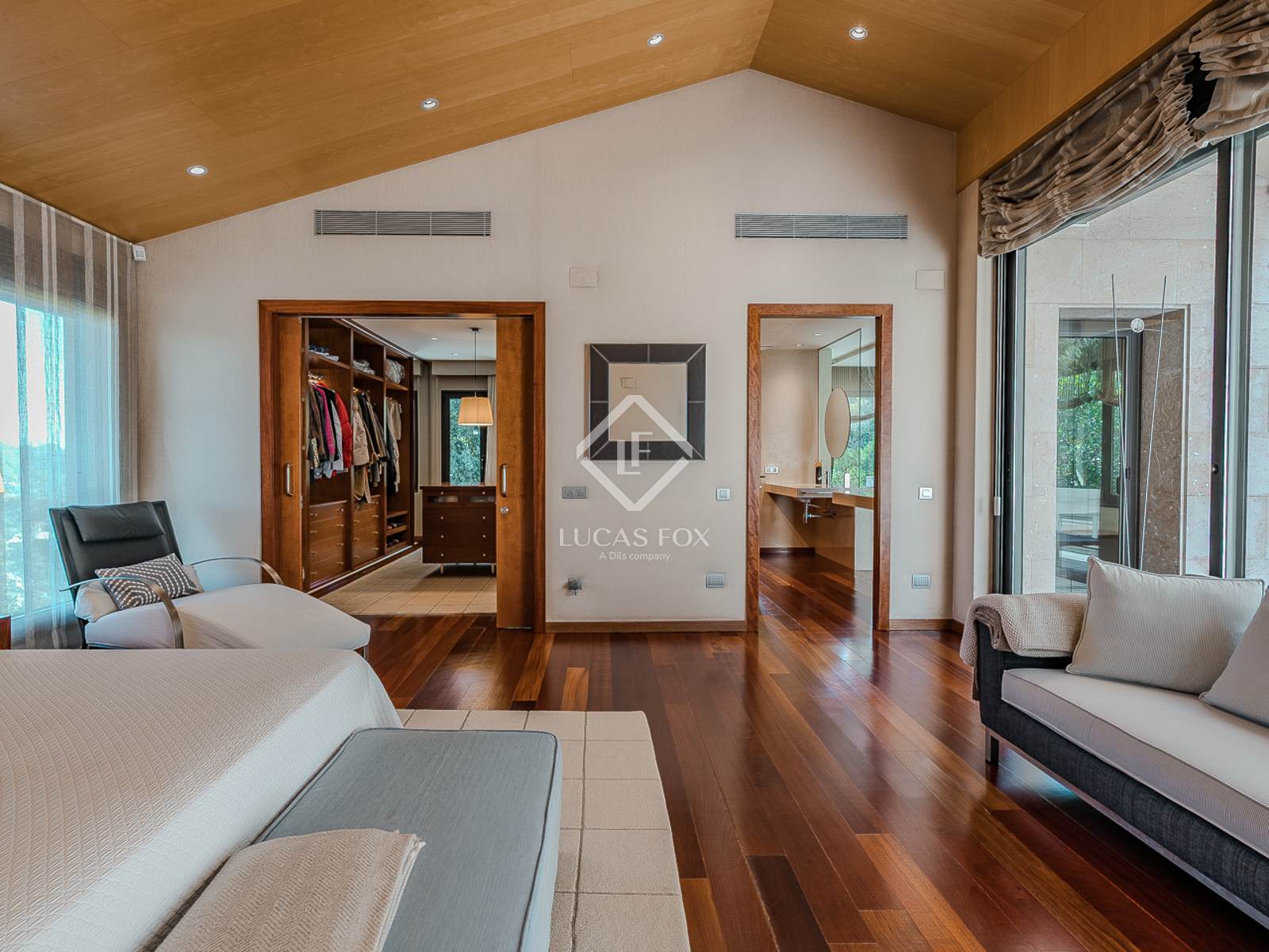- Master suite con zona de estudio, chimenea y acceso a una primera terraza privada con vistas panorámicas.