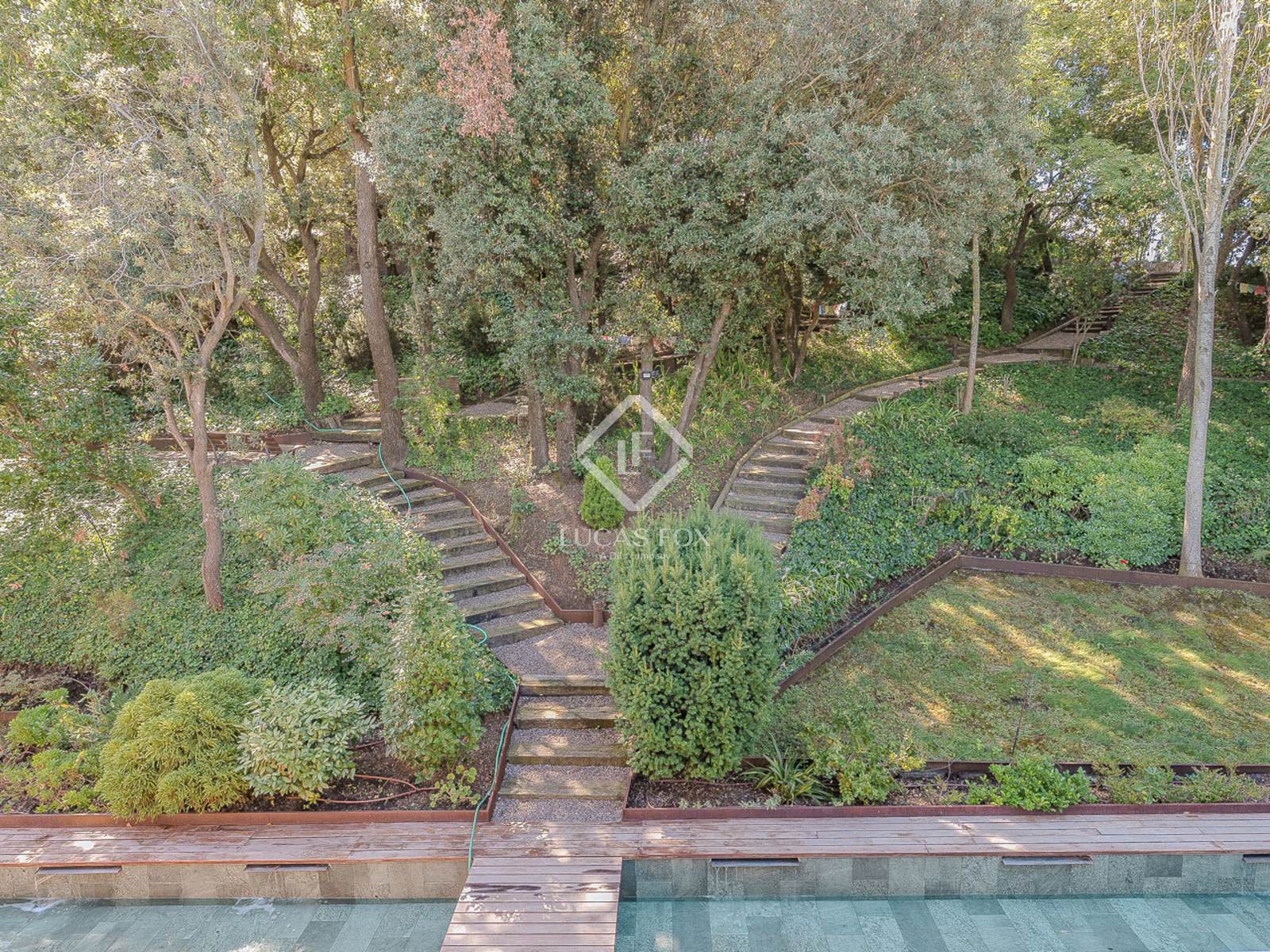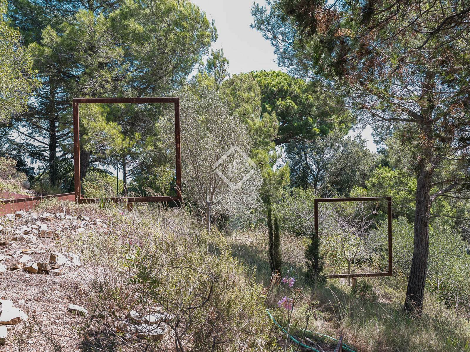 La propiedad se alza sobre una imponente parcela de 14 000 m², que combina cuidados jardines con un bosque privado, lo que crea un entorno único de privacidad y exclusividad. La casa principal, de 530 m² construidos, se distribuye en tres plantas inundadas de luz natural, todas con espectaculares vistas abiertas a las montañas de Vallvidrera.