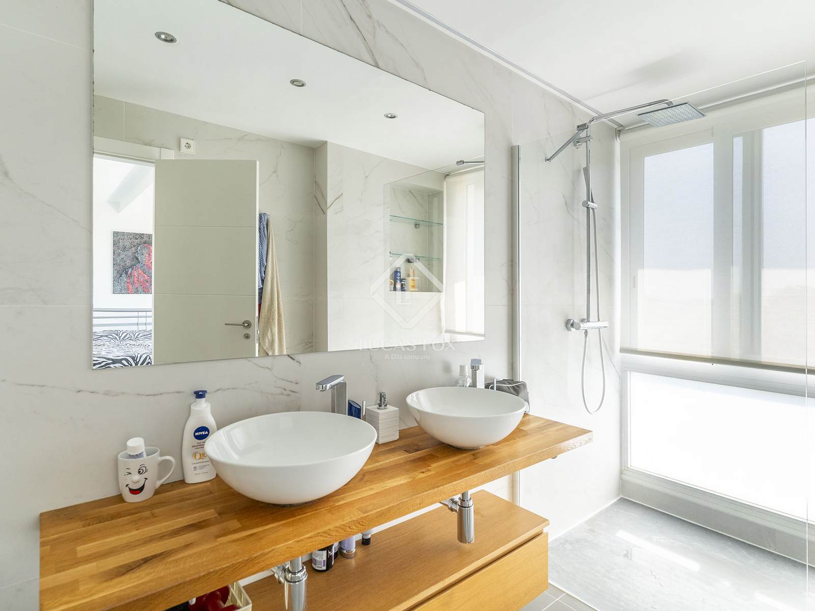 La planta inferior alberga la zona de descanso, con tres dormitorios dobles en suite, incluida la espectacular suite principal, así como un lavadero y cuarto técnico. La vivienda dispone de sistema de alarma, persianas eléctricas y climatización en todas las estancias.
