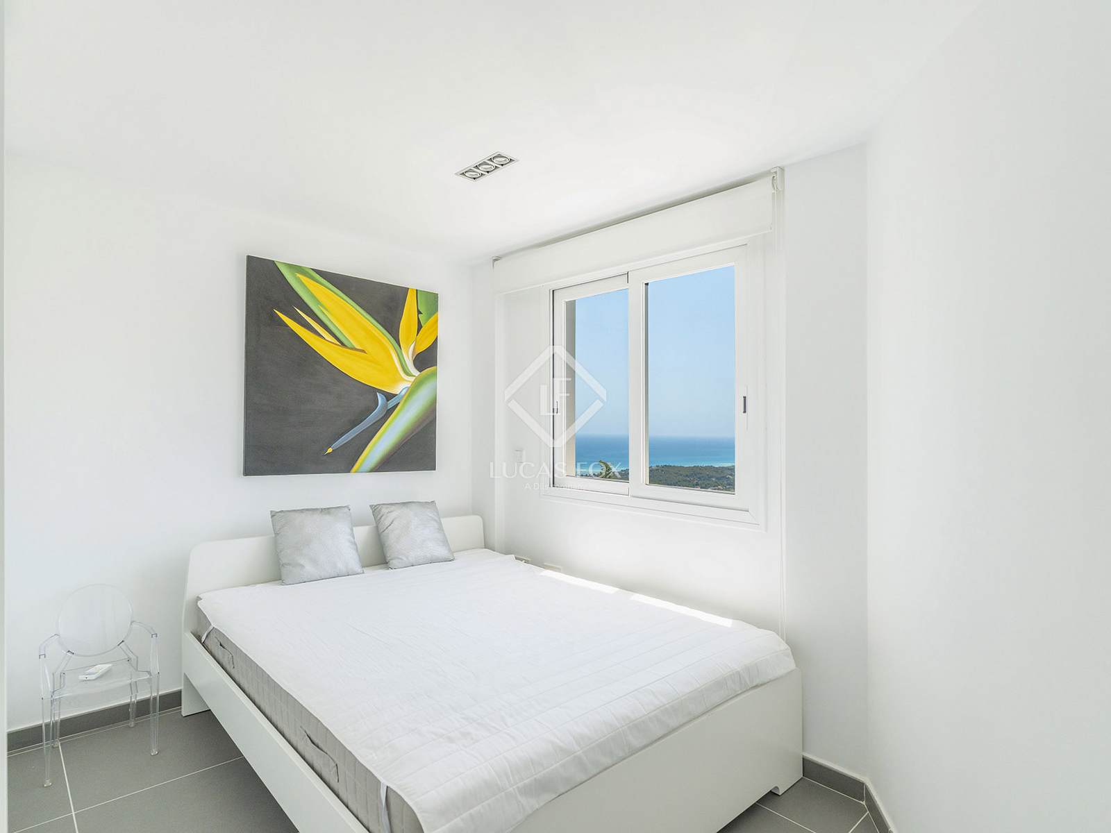 En la planta de acceso se encuentran un garaje cerrado, un elegante hall de entrada y un dormitorio doble con baño en suite. La planta principal ofrece un amplio salón de concepto abierto con espectaculares vistas al mar y salida a una terraza de 70 m² con piscina privada, zona chill out y barbacoa, además de una cocina de diseño totalmente equipada y un aseo de cortesía.