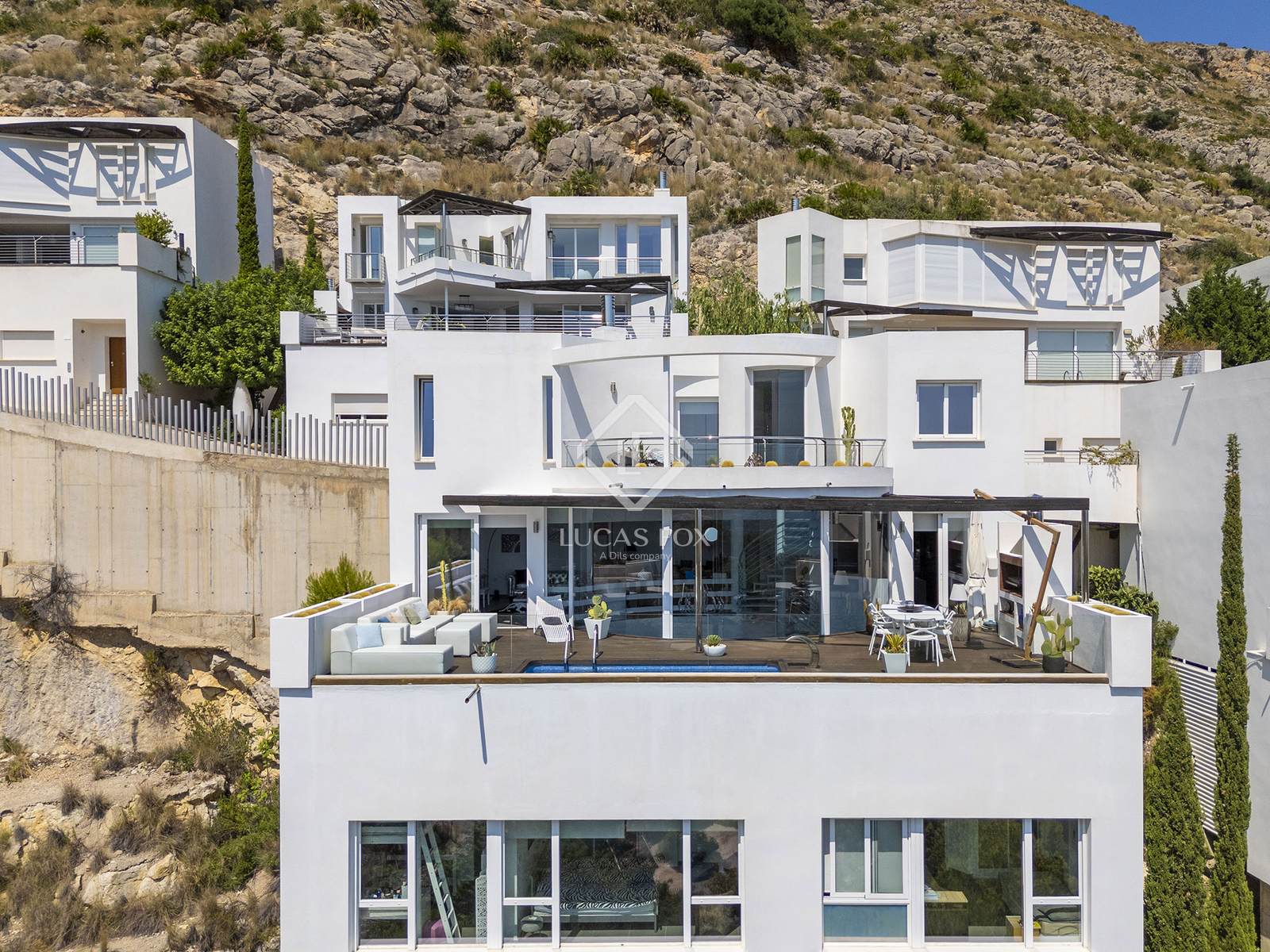 Exclusiva villa de lujo ubicada en una de las zonas más prestigiosas de Altea, dentro de una urbanización cerrada con videovigilancia 24 horas. Con 323 m² construidos y 280 m² útiles, esta elegante propiedad, distribuida en tres plantas comunicadas por ascensor y escalera, ha sido completamente reformada con materiales de primera calidad y está lista para entrar a vivir.