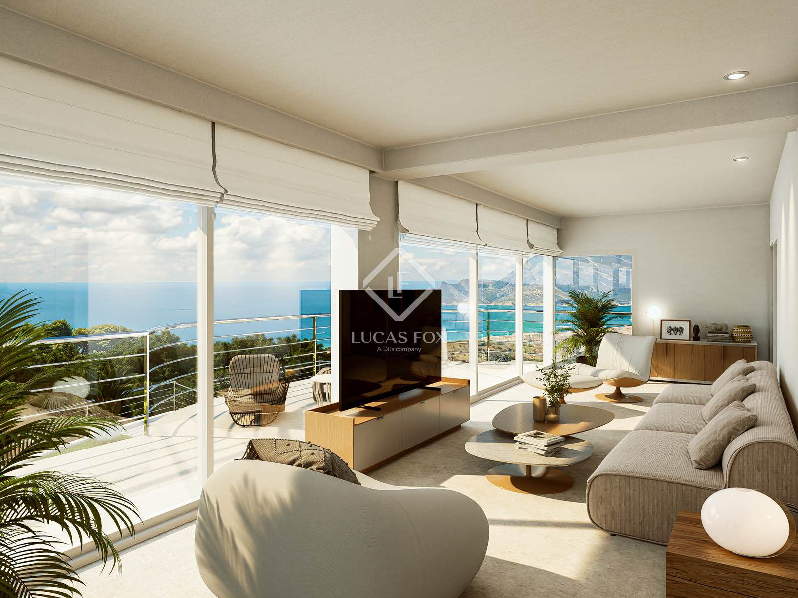 Elegante residencia contemporánea con diseño mediterráneo, amplios espacios interiores, múltiples terrazas y vistas únicas al mar y la montaña
