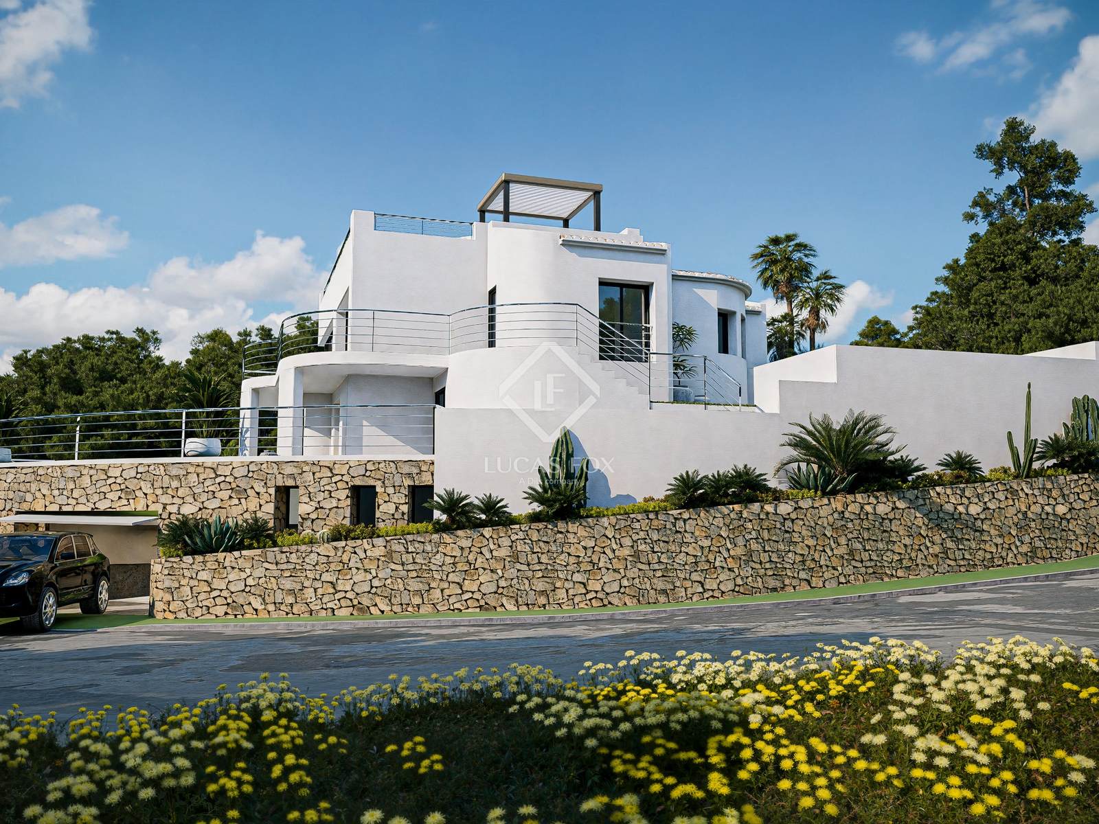 Esta espectacular vivienda de diseño mediterráneo contemporáneo destaca por sus líneas modernas, su impecable fachada blanca y los grandes ventanales que llenan cada estancia de luz natural. Rodeada de un entorno tranquilo y privado, disfruta de un enclave privilegiado en las faldas de la Sierra Bernia, donde se combinan las vistas al mar, al sol y a la montaña.