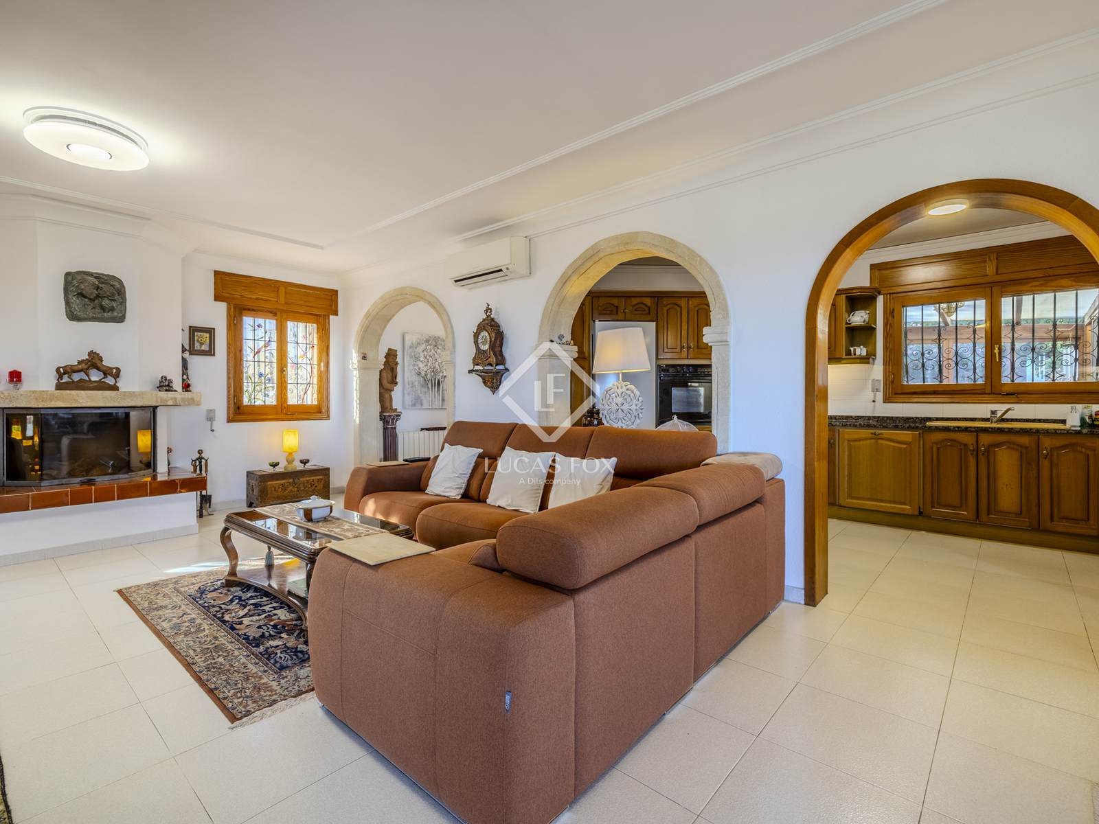 Esta villa mediterránea se encuentra en una de las zonas más exclusivas de Dénia, a tan solo 850 m de la playa de Las Rotas y a 2,5 km del centro del pueblo. Situada en una parcela de 1.805 m² con vistas al mar y al Montgó, la vivienda ofrece 350 m² construidos en dos plantas.