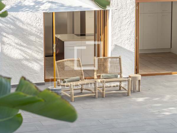 Desde el nivel de arriba, hay una puerta que conduce a la parte trasera de la vivienda y que sube a una terraza en la azotea con zona de bar.