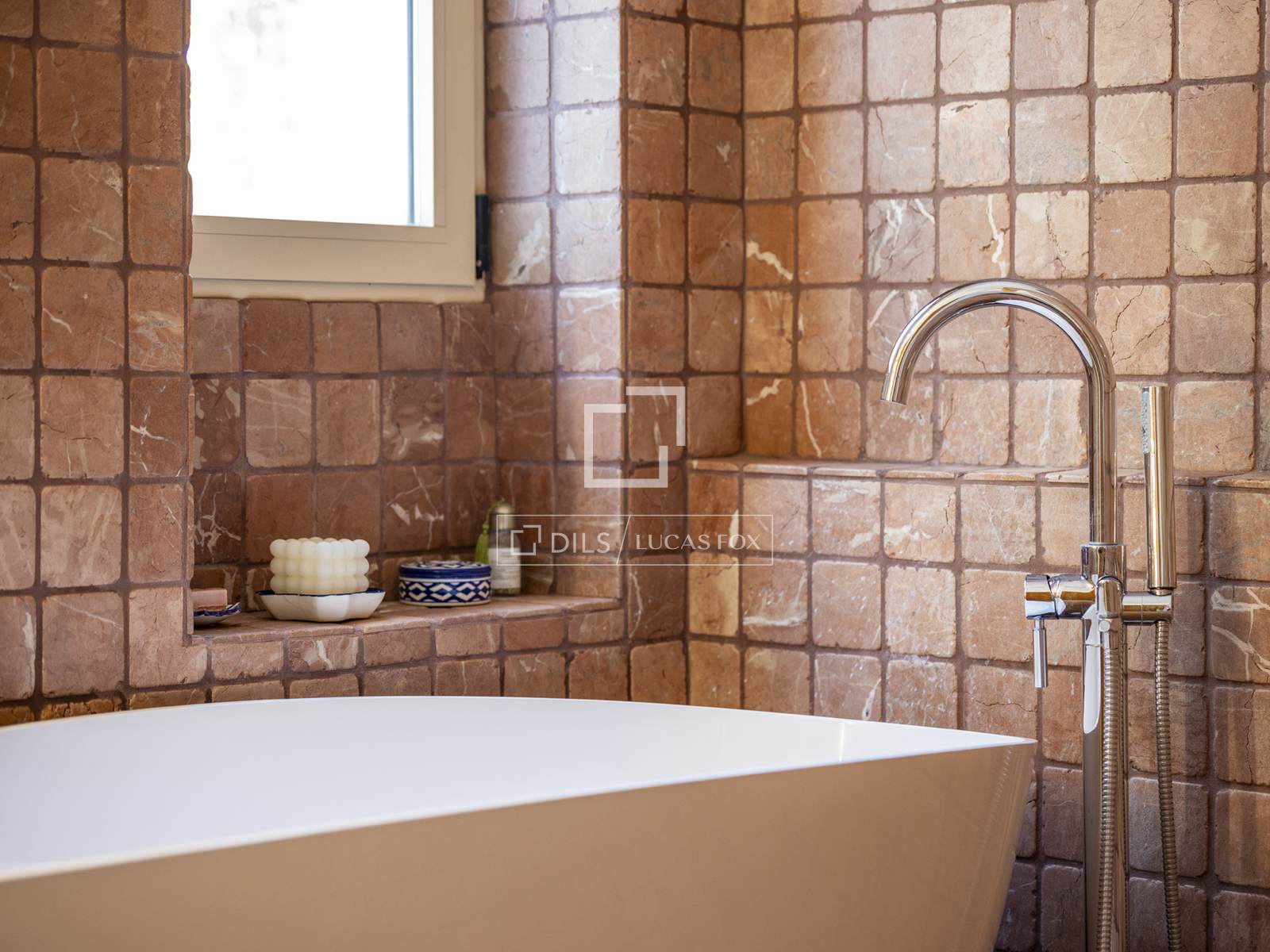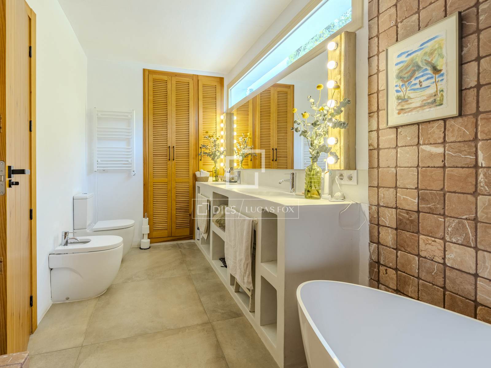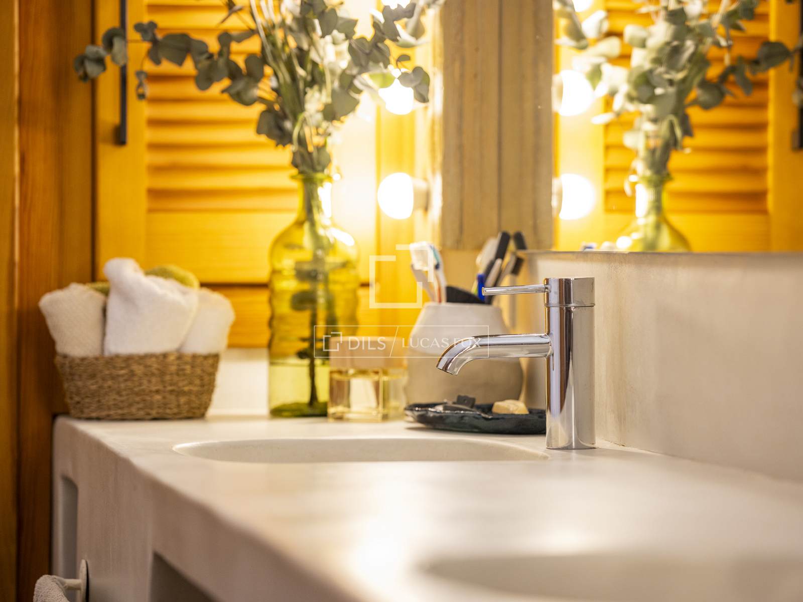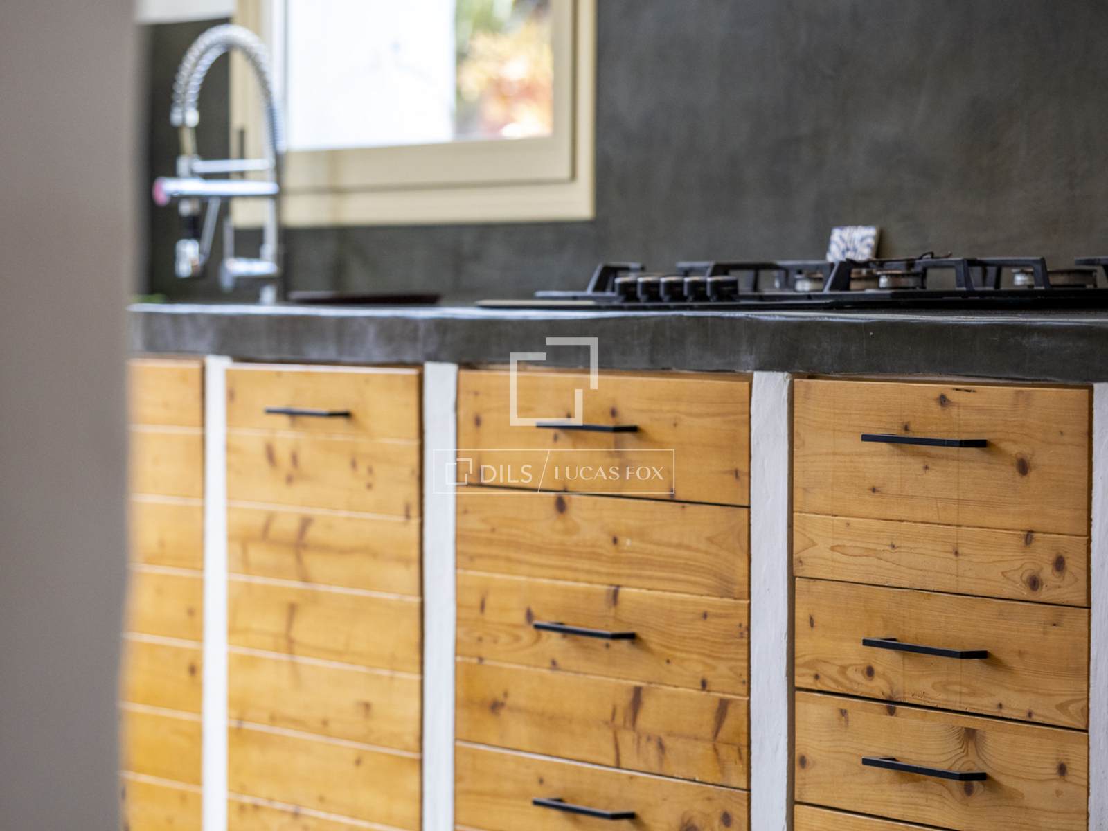 La residencia principal nos da la bienvenida a un salón de planta abierta, que cuenta con una chimenea de leña y destila calidez y encanto. Reformada en 2022, la vivienda combina el confort moderno con el carácter mediterráneo atemporal. Dispone de calefacción central de gas por radiadores, aire acondicionado frío/calor y dos chimeneas, lo que garantiza el confort durante todo el año. Un pozo de recogida de agua de lluvia ayuda a mantener bajas las facturas de agua y, para una mayor sostenibilidad y un menor consumo energético, la vivienda está equipada con dieciséis paneles solares, lo que la convierte en una vivienda ecológica y energéticamente eficiente.