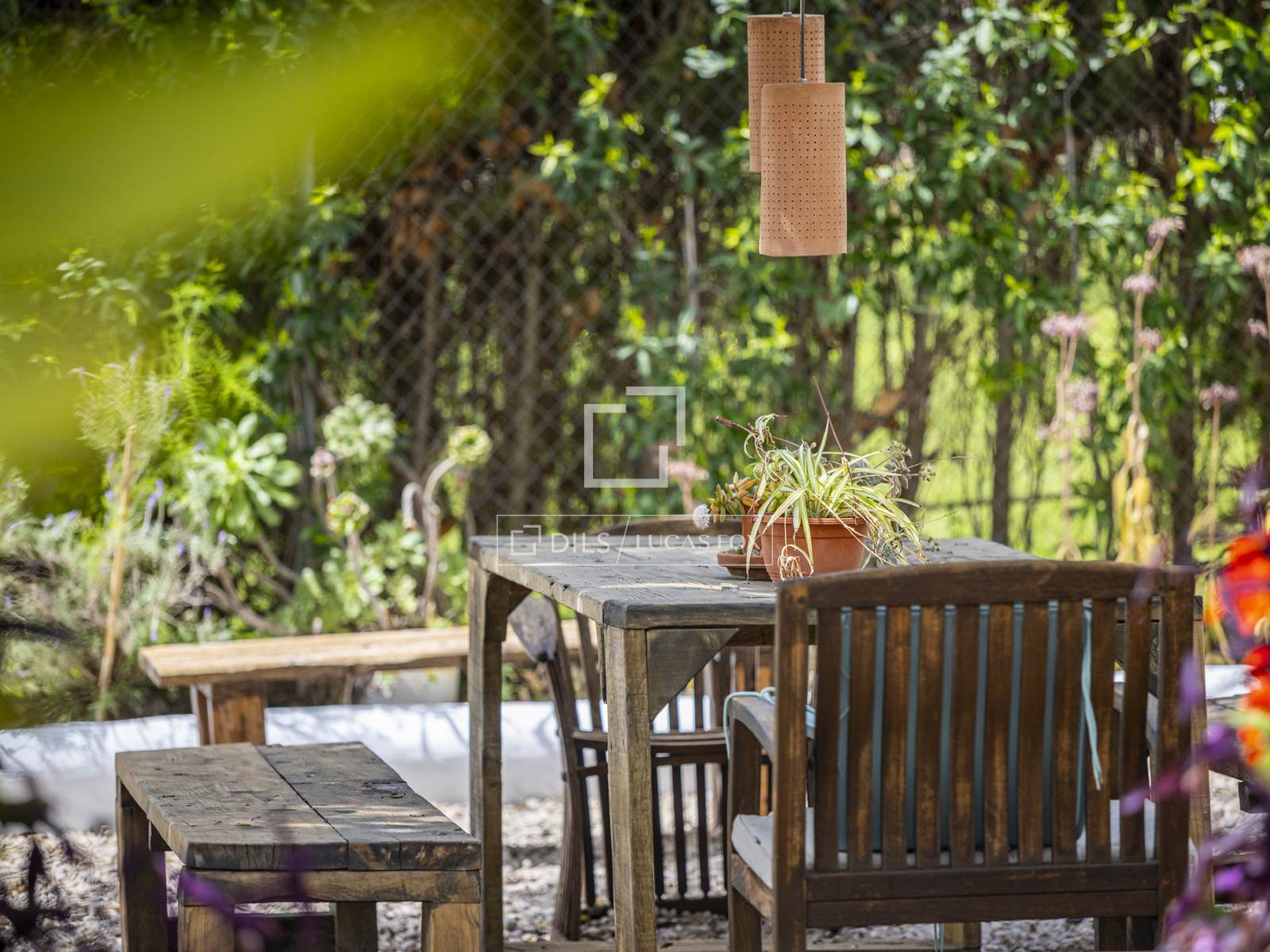 La zona exterior ofrece un jardín mediterráneo de fácil mantenimiento, repleto de plantas, flores coloridas, árboles frutales, olivos y un pequeño huerto, ideal para cultivar sus propios productos. Rodeado de setos y árboles maduros, el jardín proporciona total privacidad y tranquilidad. También cuenta con una piscina de 8x4 metros, rodeada de exuberante vegetación y una ducha exterior con agua fría y caliente. Varias terrazas alrededor de la vivienda ofrecen múltiples opciones para relajarse: disfrute del sol o retírese a la sombra con un libro o una copa de vino. Ya sea para recibir amigos o disfrutar de momentos tranquilos en familia, esta vivienda ofrece una combinación perfecta de confort y serenidad mediterránea.