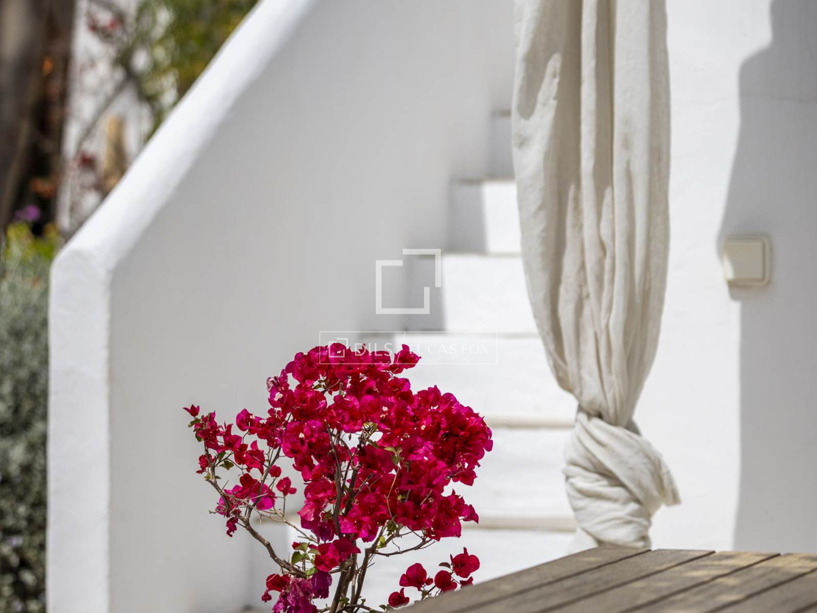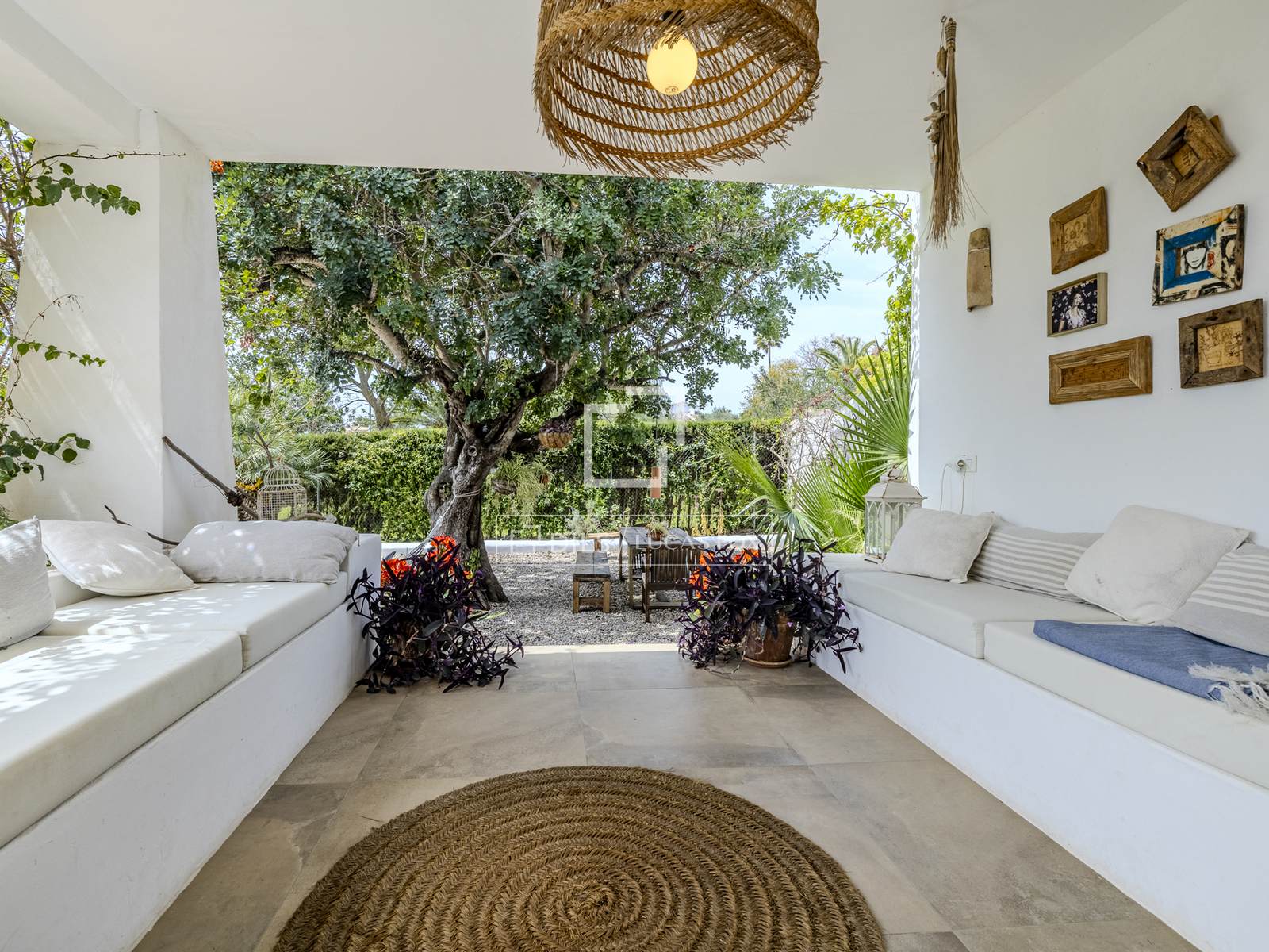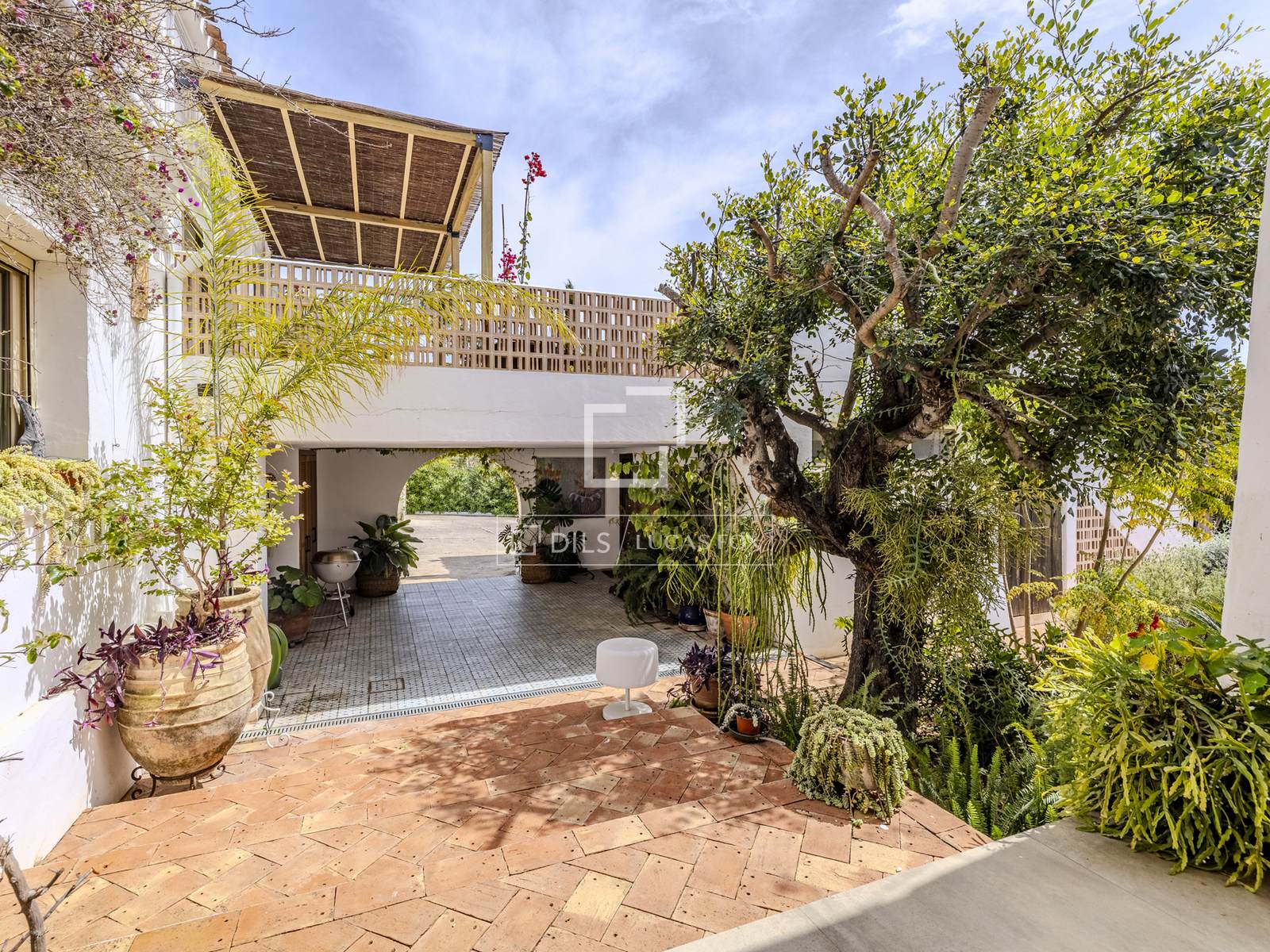 Situada al final de una tranquila calle sin salida, esta vivienda mediterránea, bellamente renovada, ofrece absoluta paz y privacidad, sin tráfico de paso y con un ambiente sereno. Un amplio patio delantero da la bienvenida a la vivienda, con suficiente espacio para aparcamiento varios vehículos y una cochera cubierta para un coche.