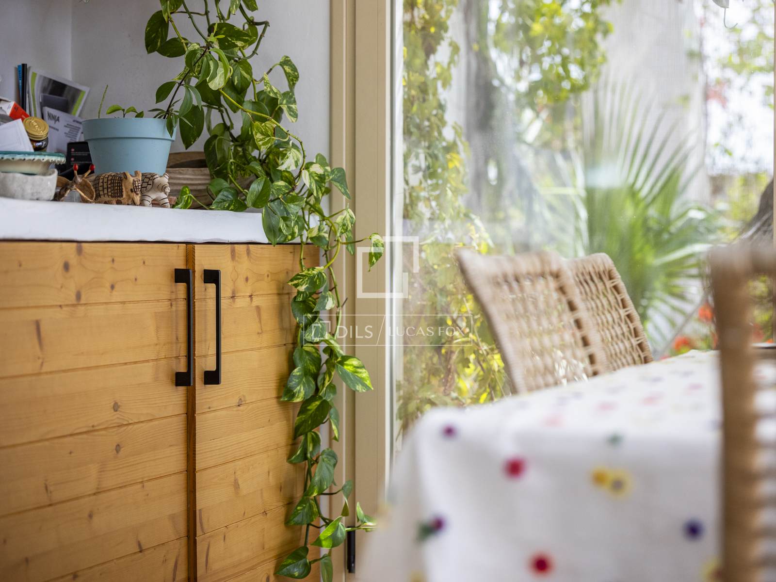 La cocina es una verdadera joya, totalmente equipada y perfectamente integrada al salón. Incluye un comedor y acceso directo a un patio, lavadero y jardín, ideal para disfrutar de la vida al aire libre.