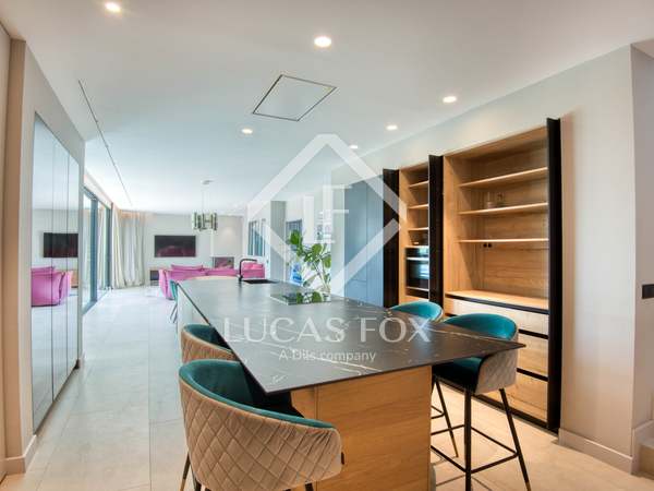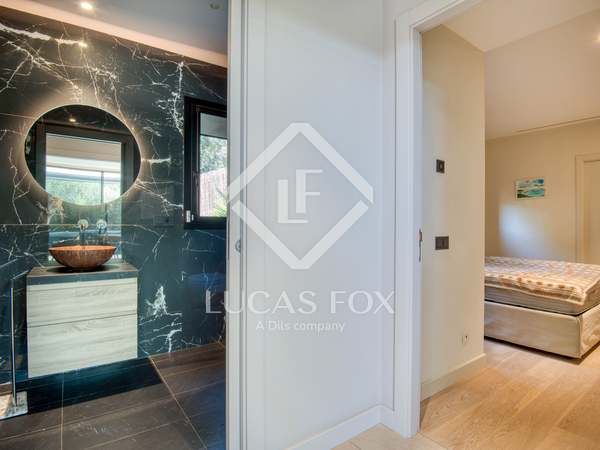 Se construyó en 2015 y los acabados son modernos y de la más alta calidad. La planta baja ofrece el amplio y luminoso salón con chimenea y acceso a una terraza chill-out, donde se encuentra la piscina climatizada y el jacuzzi, el comedor con una isla, y la cocina con zona de comedor, totalmente equipada con todos los electrodomésticos y con acceso al jardín. En esta planta también se encuentra un dormitorio con cuarto de baño privado con ducha y una amplia terraza.