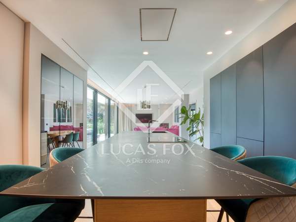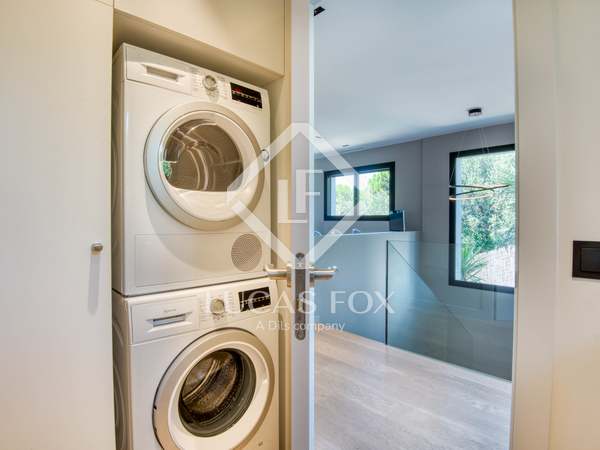 La planta inferior consta de una gran sala de juegos y cine, una bodega con climatización individualizada, lavadero y garaje de 2 plazas. La vivienda dispone de ascensor en todas las plantas y todas las estancias tienen grandes ventanales que permiten la entrada de abundante luz natural.
