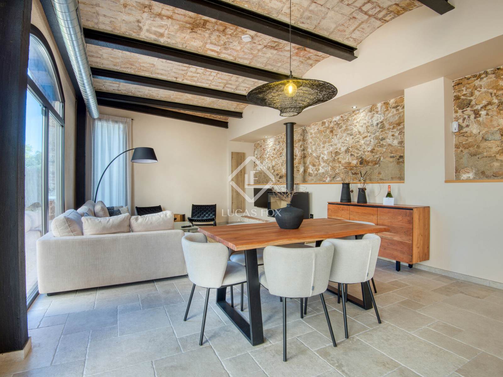 - Salón-comedor con chimenea y grandes ventanales