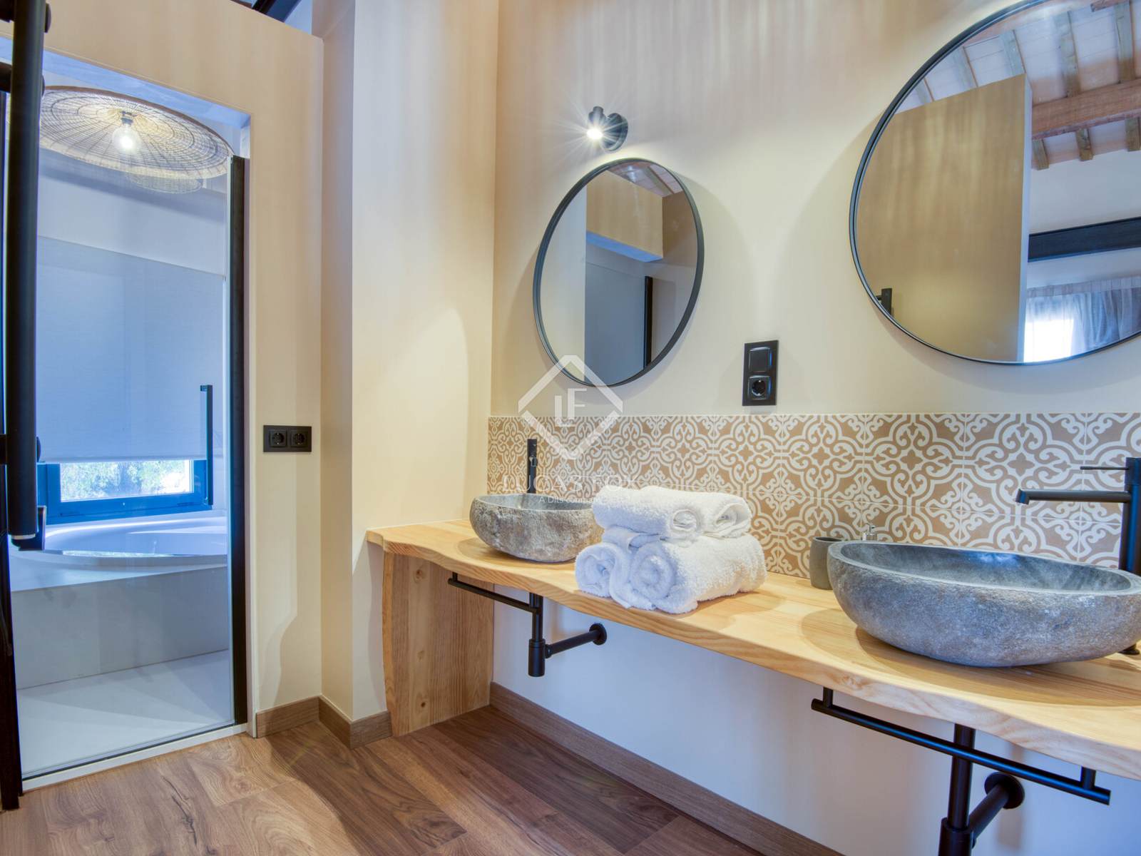 El histórico y elegante conjunto residencial cuenta con tres viviendas con personalidad propia. La amplia casa principal se presenta restaurada con exquisito gusto para ofrecer una cómoda vivienda. Dispone de estancias de estilo cálido y sofisticado para el disfrute familiar.