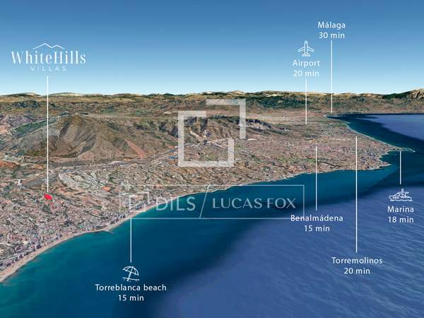 White Hills Villas es una promoción ubicada en Torreblanca, en el municipio de Fuengirola. Se encuentra a tan solo 4 minutos de las playas de Carvajal y Torreblanca, a 15 minutos del centro de Fuengirola y a 35 minutos del centro de Málaga.