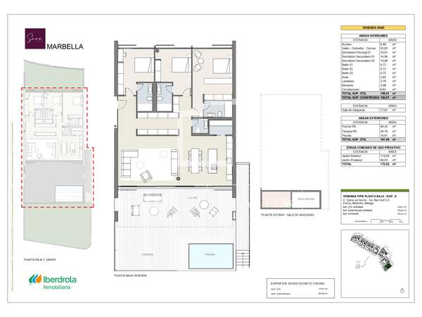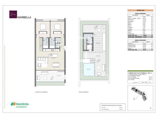 - Piscina privada tipo skimmer ubicada en la terraza o jardín (según tipología).