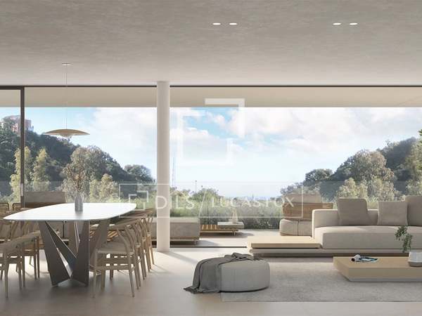 La esencia del proyecto se basa en la exclusividad y la eficiencia energética, con una calificación A respaldada por soluciones constructivas ecoeficientes. El espacio principal integra salón, comedor y cocina en un concepto abierto de gran amplitud, con acceso directo al porche exterior. La carpintería exterior de aluminio lacado con rotura de puente térmico, los ventanales de suelo a techo y el acristalamiento Climalit con doble vidrio, cámara deshidratada, tratamiento bajo emisivo y control solar garantizan un confort térmico y acústico excepcional.