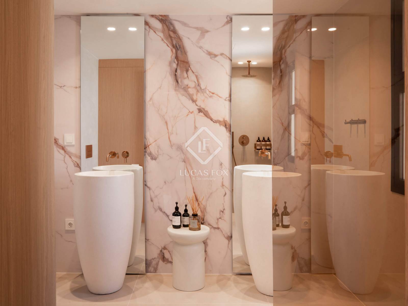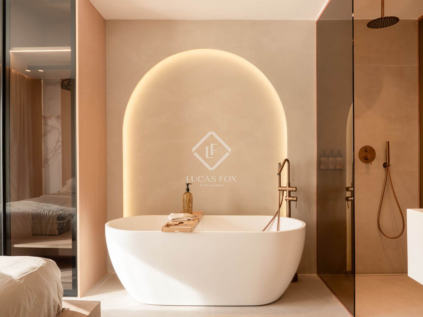Esta elegante vivienda ha sido cuidadosamente renovada con acabados de alta gama, como detalles de microcemento, iluminación LED oculta y carpintería a medida, creando un ambiente de sofisticación y lujo moderno. La cocina abierta se integra a la perfección con el amplio salón-comedor, complementado con suelos de piedra, puertas de cristal y abundante luz natural.