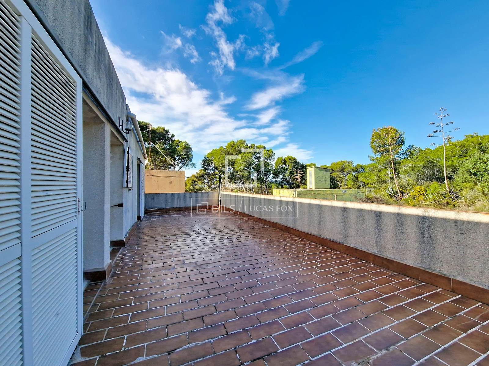 En la planta superior se encuentra el tercer apartamento, de mayor tamaño y concebido como vivienda principal, que dispone de tres dormitorios, un luminoso salón comedor, cuarto de baño completo y una amplia terraza a pie de comedor desde la que las vistas al litoral se despliegan en toda su amplitud, convirtiéndose en el espacio ideal para disfrutar del clima mediterráneo durante todo el año.