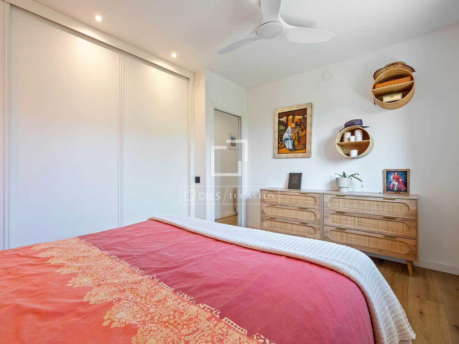 La planta superior es un santuario de tranquilidad. A través de un distribuidor bañado en luz cenital, se accede a cuatro dormitorios dobles, todos ellos exteriores y con proporciones generosas que permiten diversas configuraciones de mobiliario. El baño de esta planta es una oda al bienestar, incluyendo un plato de ducha con rociador integrado en el techo, creando una experiencia de spa diario.