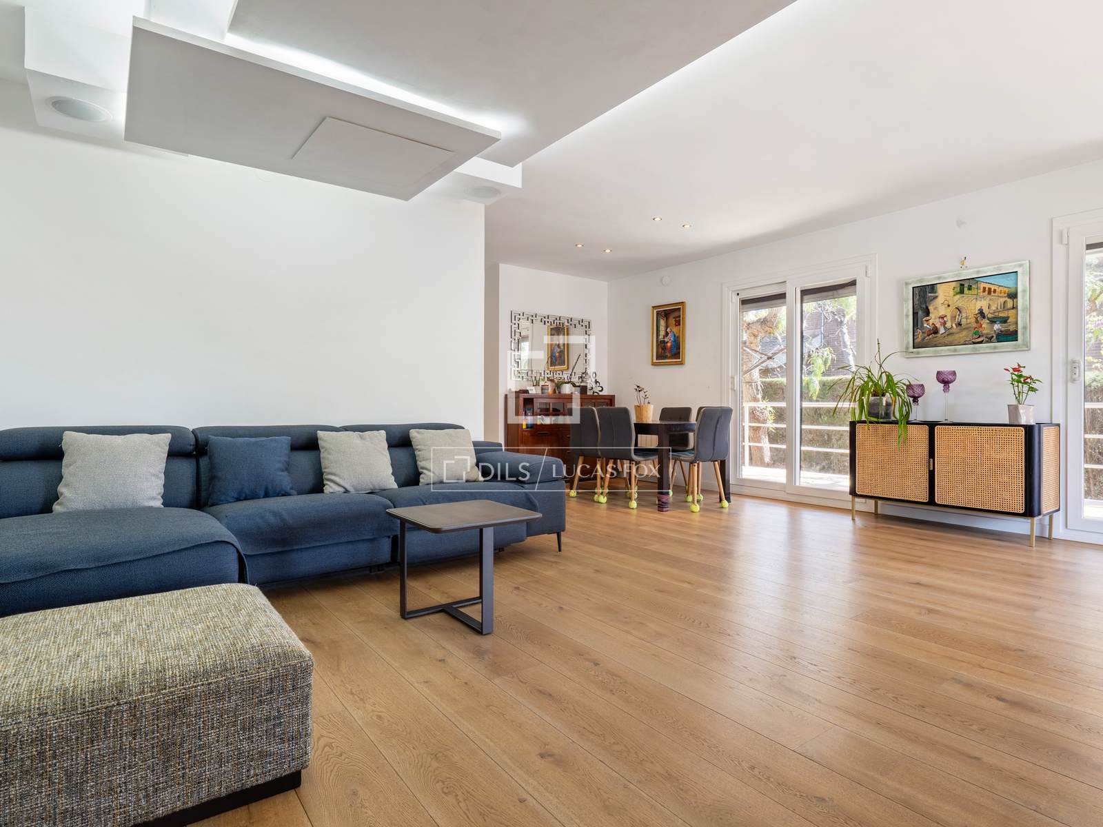 Al cruzar el umbral, nos recibe una zona de día de concepto abierto que impresiona por su volumetría y luminosidad. El salón-comedor ha sido diseñado como un espacio multifuncional donde los límites entre el interior y el exterior se difuminan gracias a sus inmensos ventanales de suelo a techo.