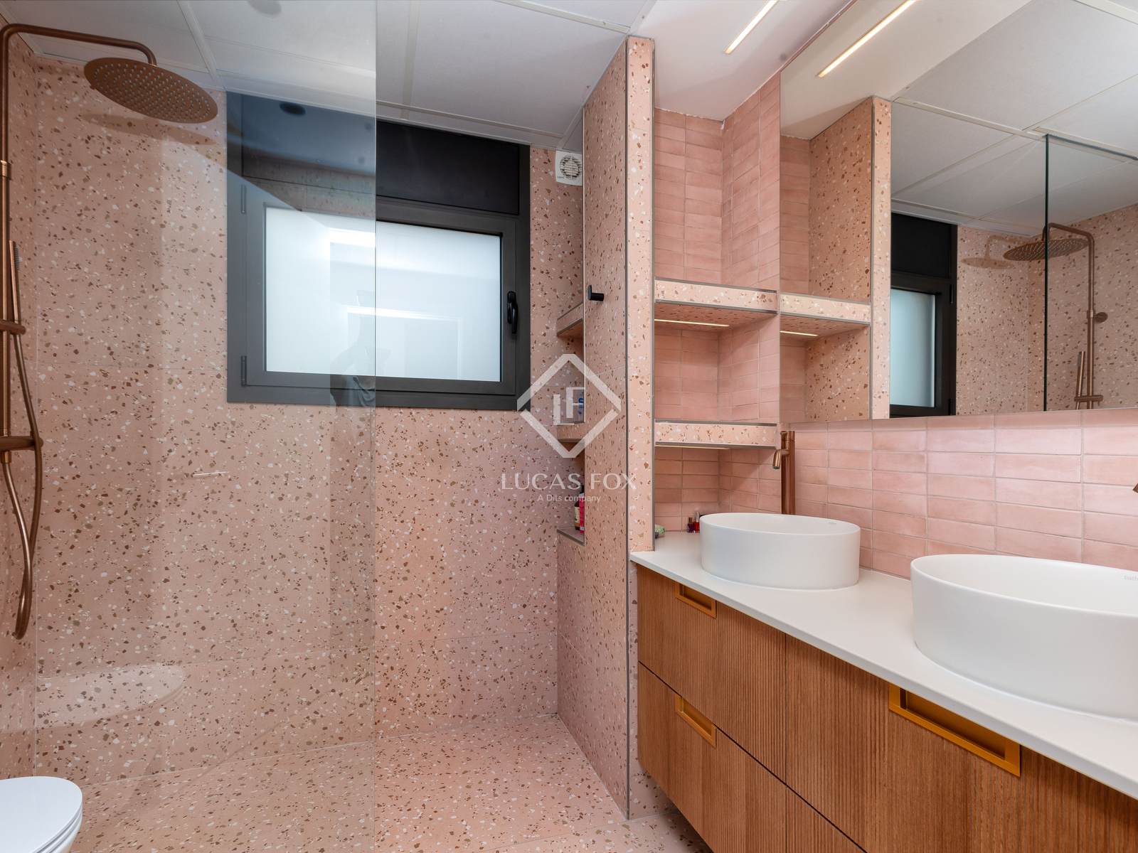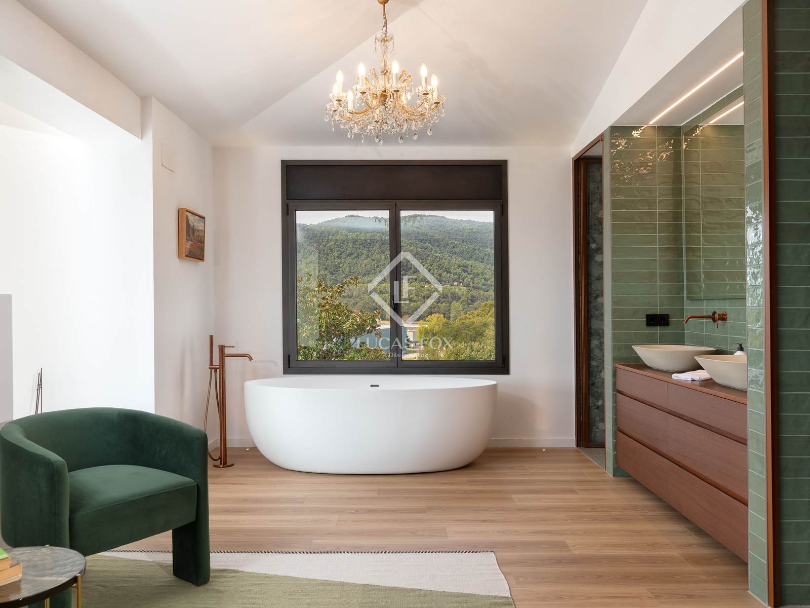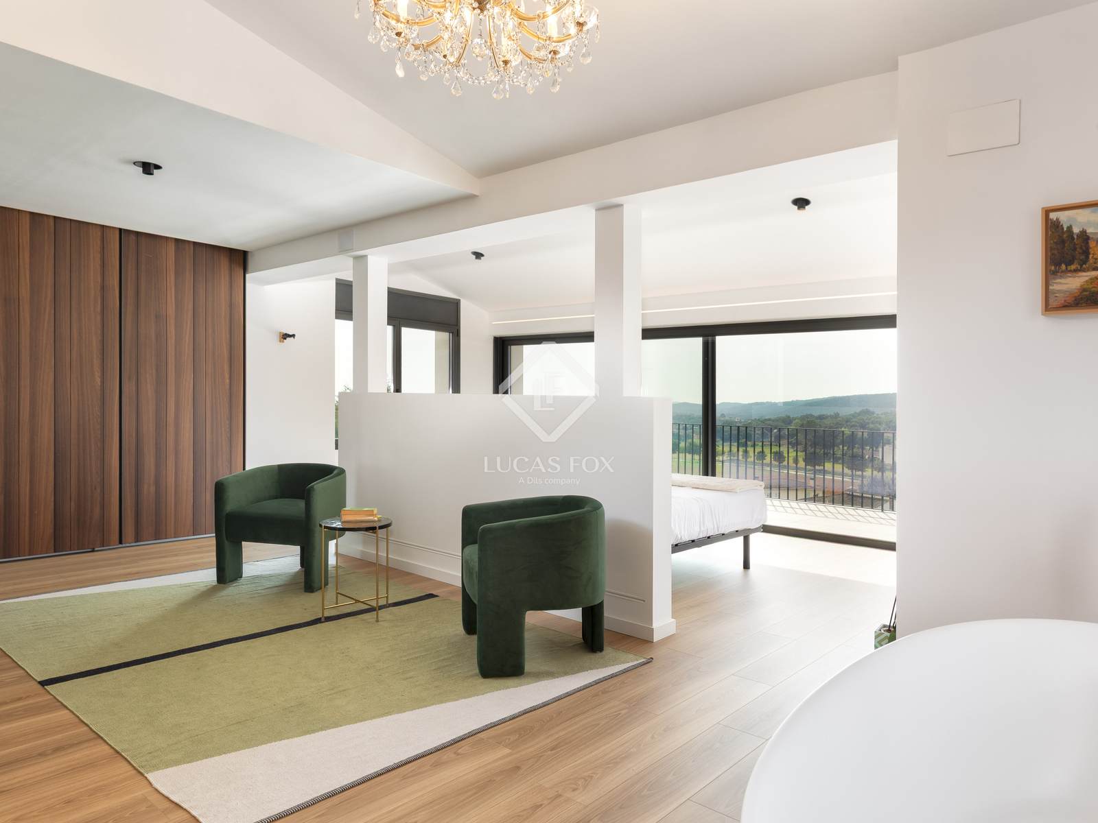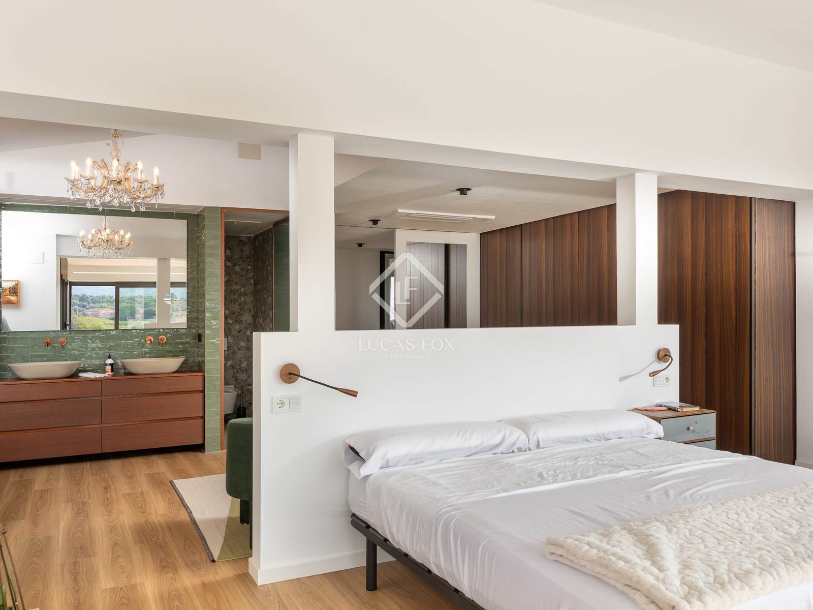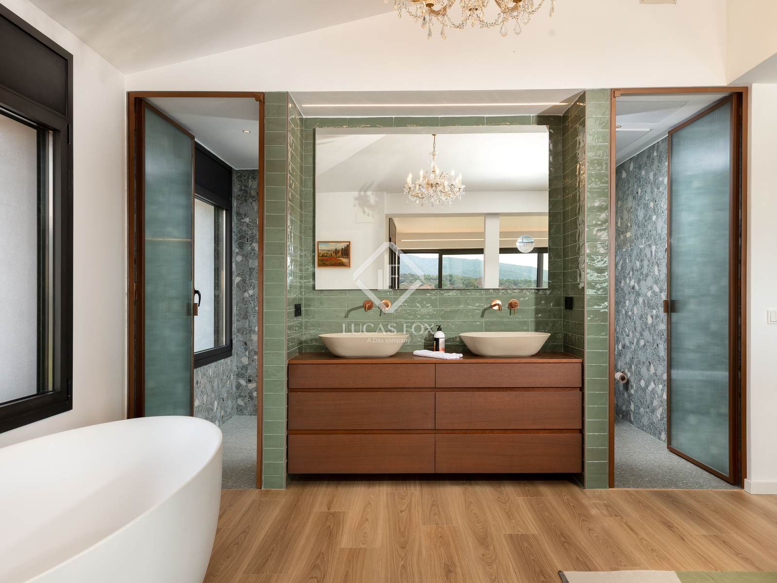 En la planta superior, la suite principal destaca por su luz natural y una terraza privada con vistas, junto a un baño de diseño exclusivo con bañera exenta, doble ducha y lavabo doble. Además, hay dos habitaciones dobles adicionales, un baño completo y una práctica zona de lavandería.