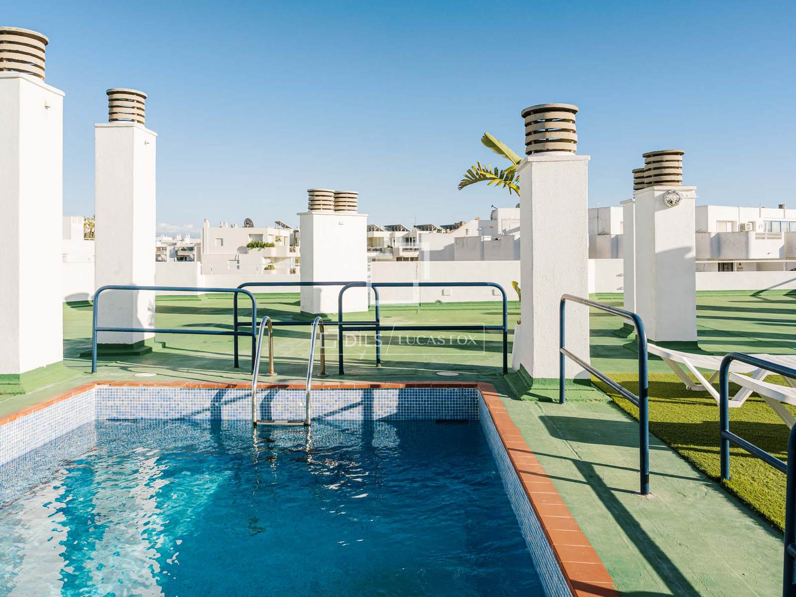 Apartamento de 2 dormitorios totalmente renovado con terraza en Marina Botafoch, con 2 piscinas comunitarias, ascensor y una espectacular azotea con vistas panorámicas de 180º al mar, Formentera, la marina, Dalt Vila y las montañas.