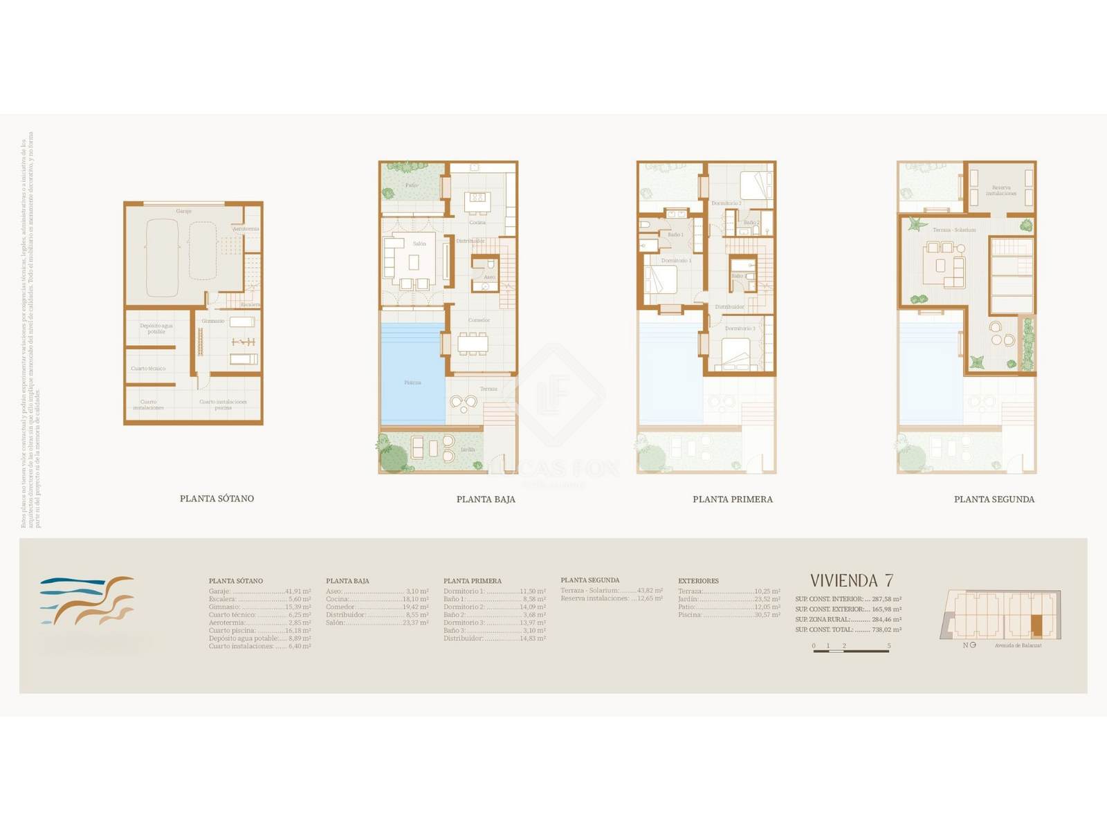 Las villas, con superficies de entre 288 m² y 291 m², se distribuyen en cuatro niveles que reflejan un equilibrio perfecto entre diseño, confort y sostenibilidad: