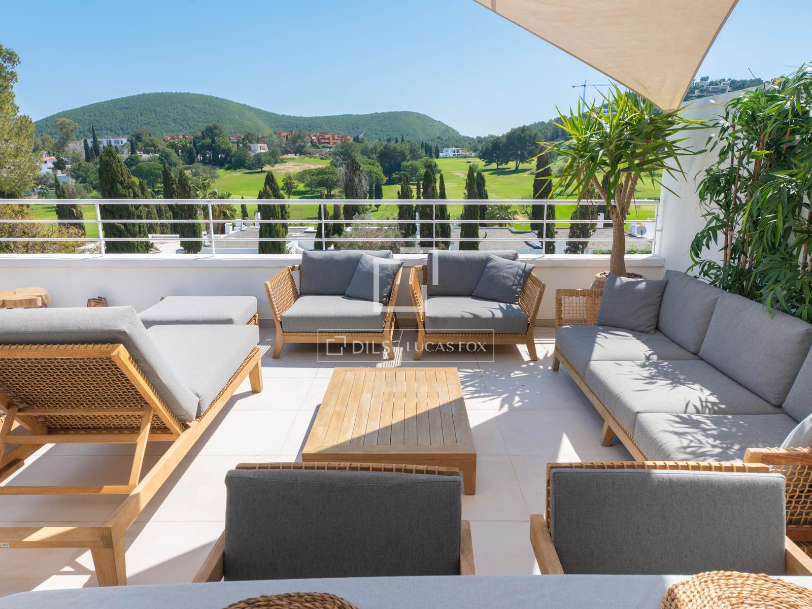 Destaca su espectacular terraza de 65 m², ideal para disfrutar del clima mediterráneo, con vistas abiertas al campo de golf. Este espacio exterior cuenta con zona de barbacoa y área chill out, perfecta para relajarse o recibir invitados.