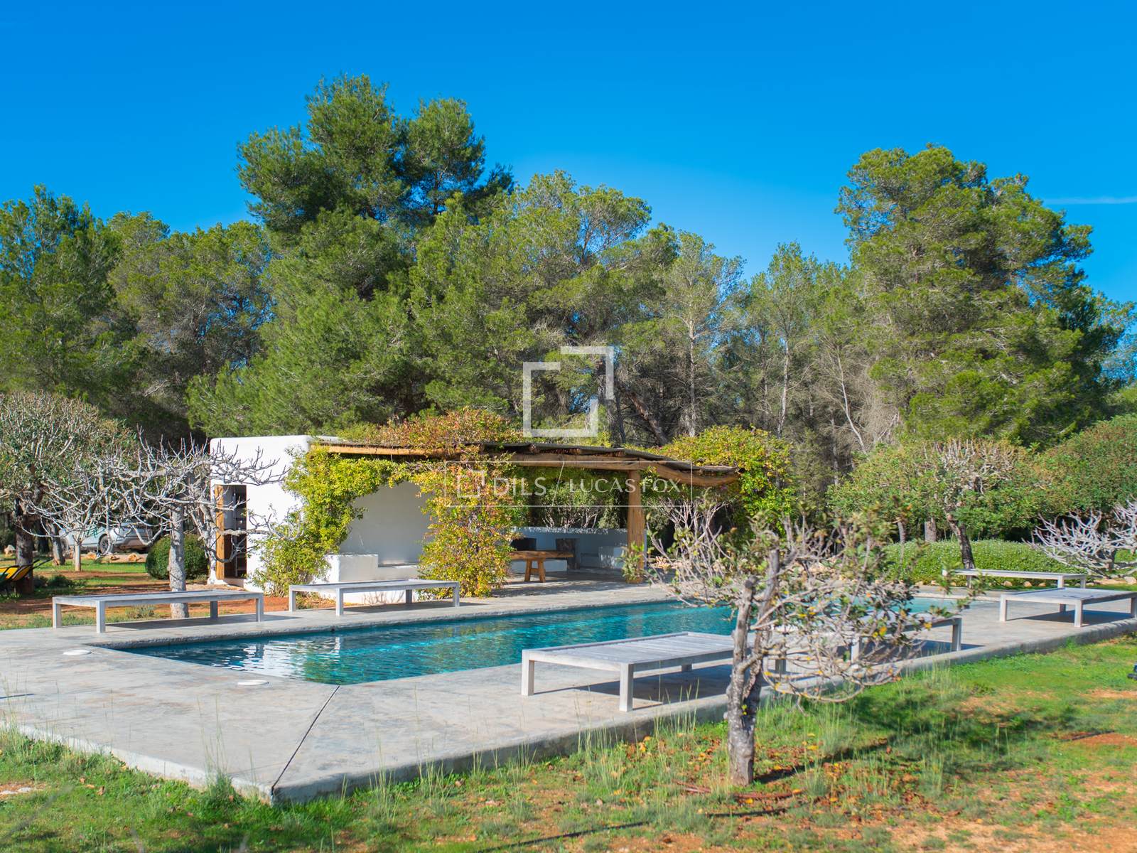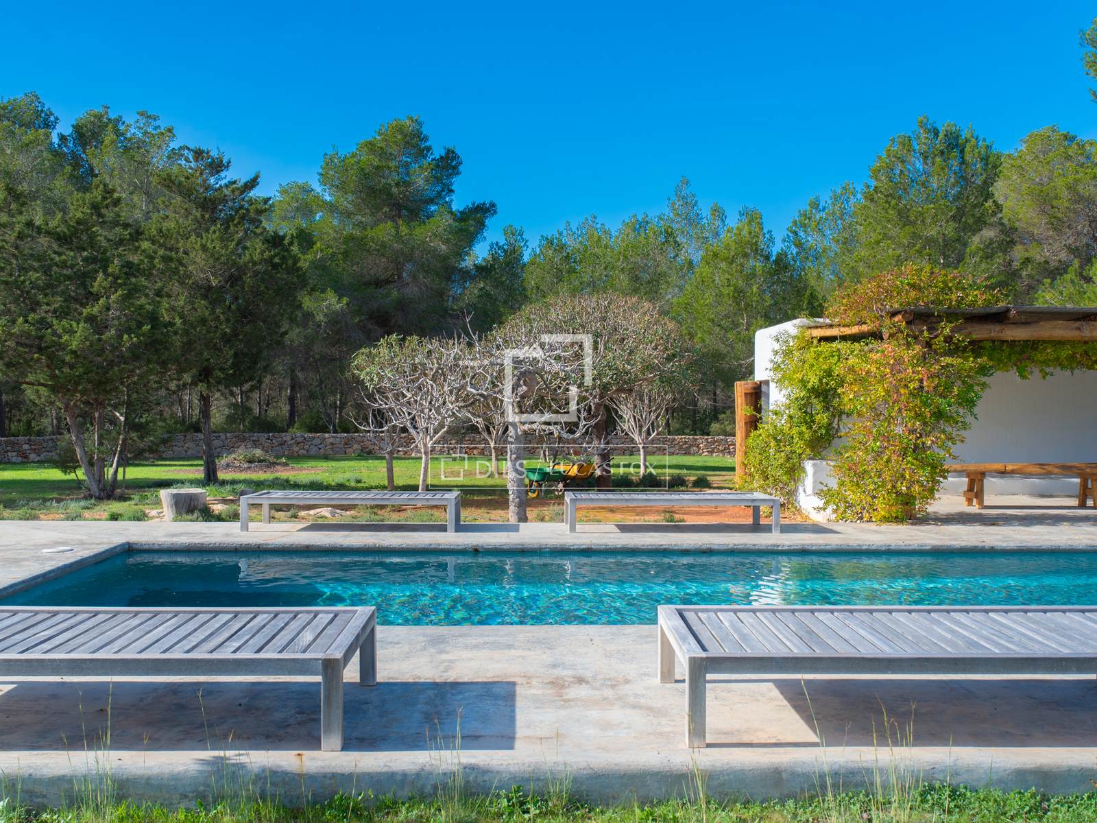 Impresionante villa de estilo ibicenco en una increíble parcela llana de 55.000 m². 5 habitaciones con baño privado, piscina, privacidad, en San Mateo, a 10 minutos de Santa Gertrudis