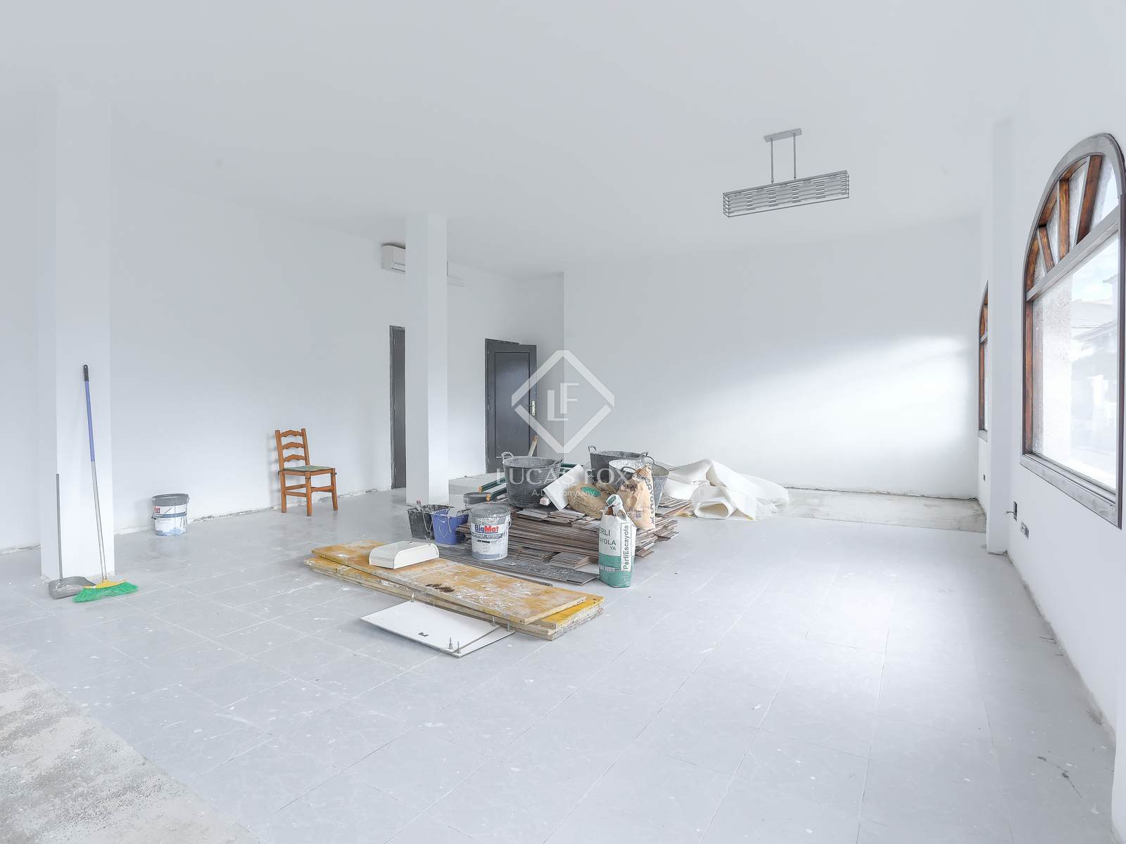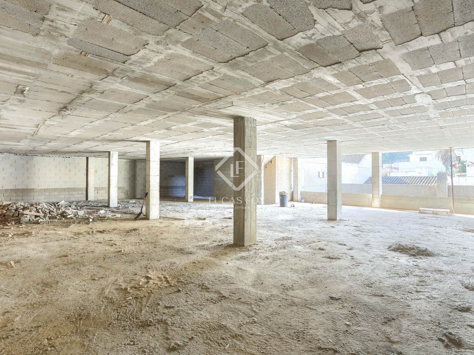 El primer edificio se asienta sobre una parcela de 555 m² y consta de planta semisótano y planta baja, con una superficie construida total de aproximadamente 647 m². Actualmente utilizado como almacén, garaje y local comercial, la estructura es espaciosa y diáfana, lo que permite varios opciones de diseño.