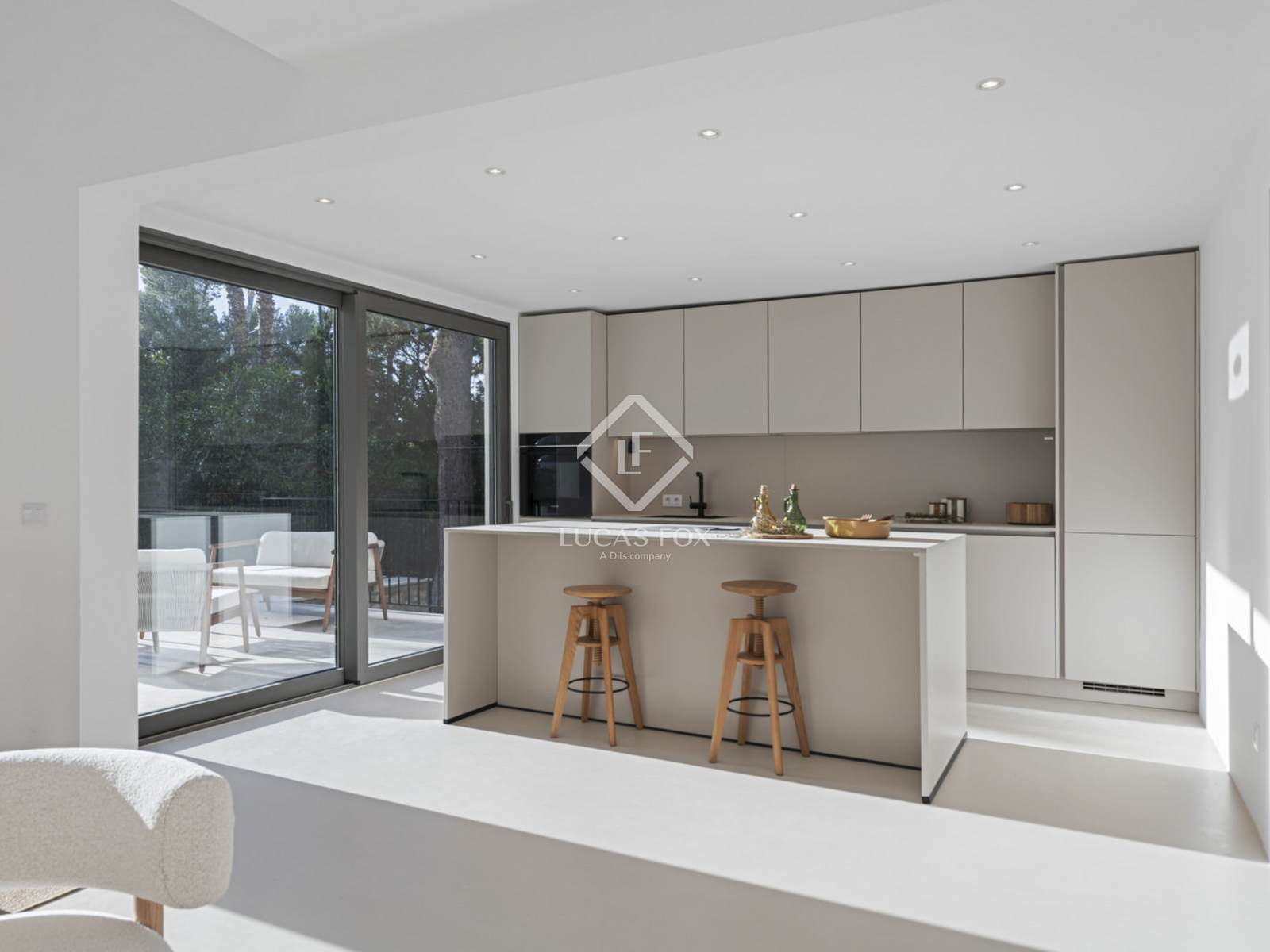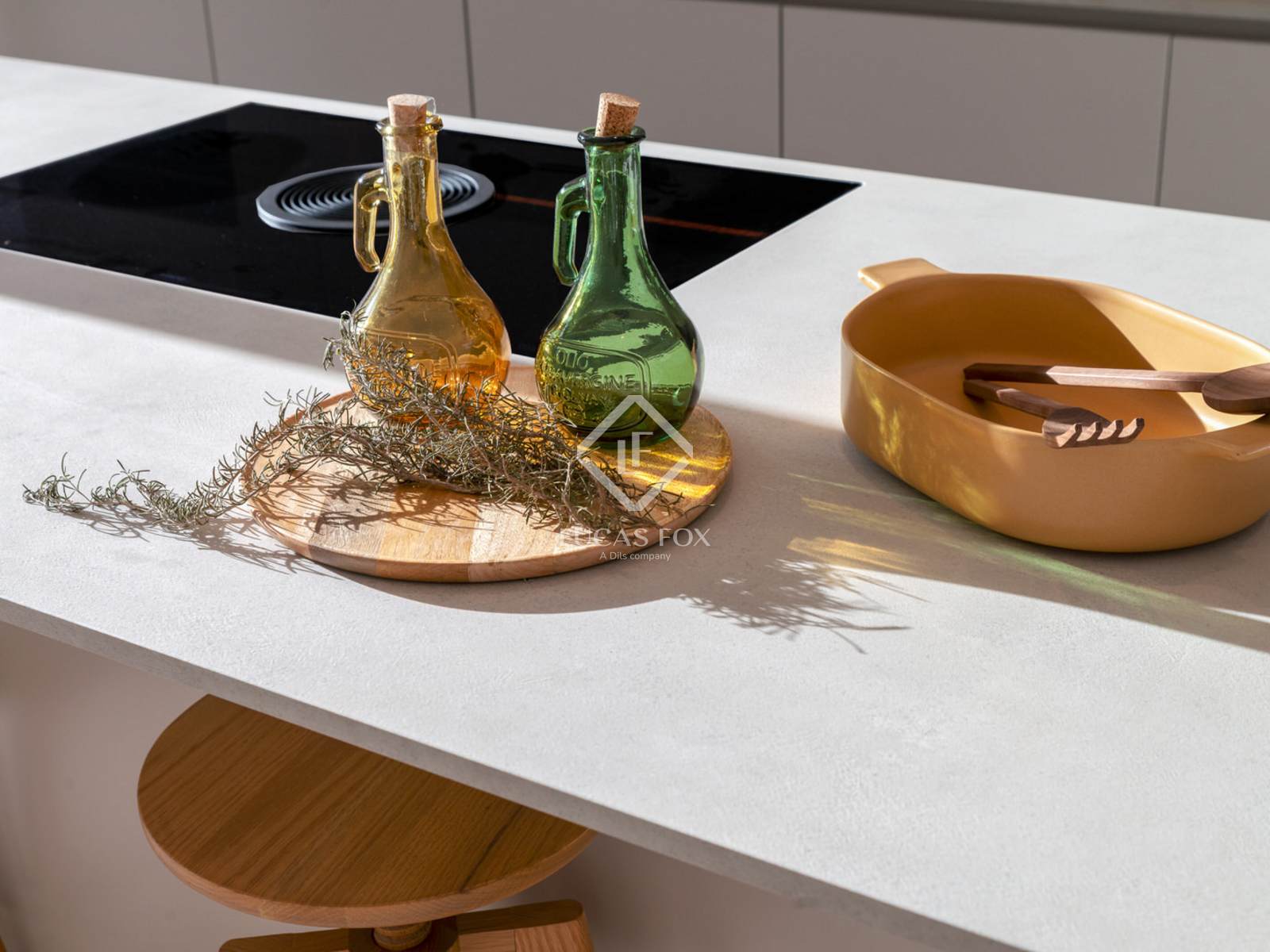 Al ingresar a la villa, usted le da la bienvenida a un amplio espacio de planta abierta que incorpora a la perfección la cocina, la salón y el comedor. La cocina es moderna y está completamente equipada, y junto a la cocina, la salón fluye naturalmente hacia el comedor, y ambos espacios disfrutan de mucha luz natural gracias a las grandes puertas corredizas de vidrio.