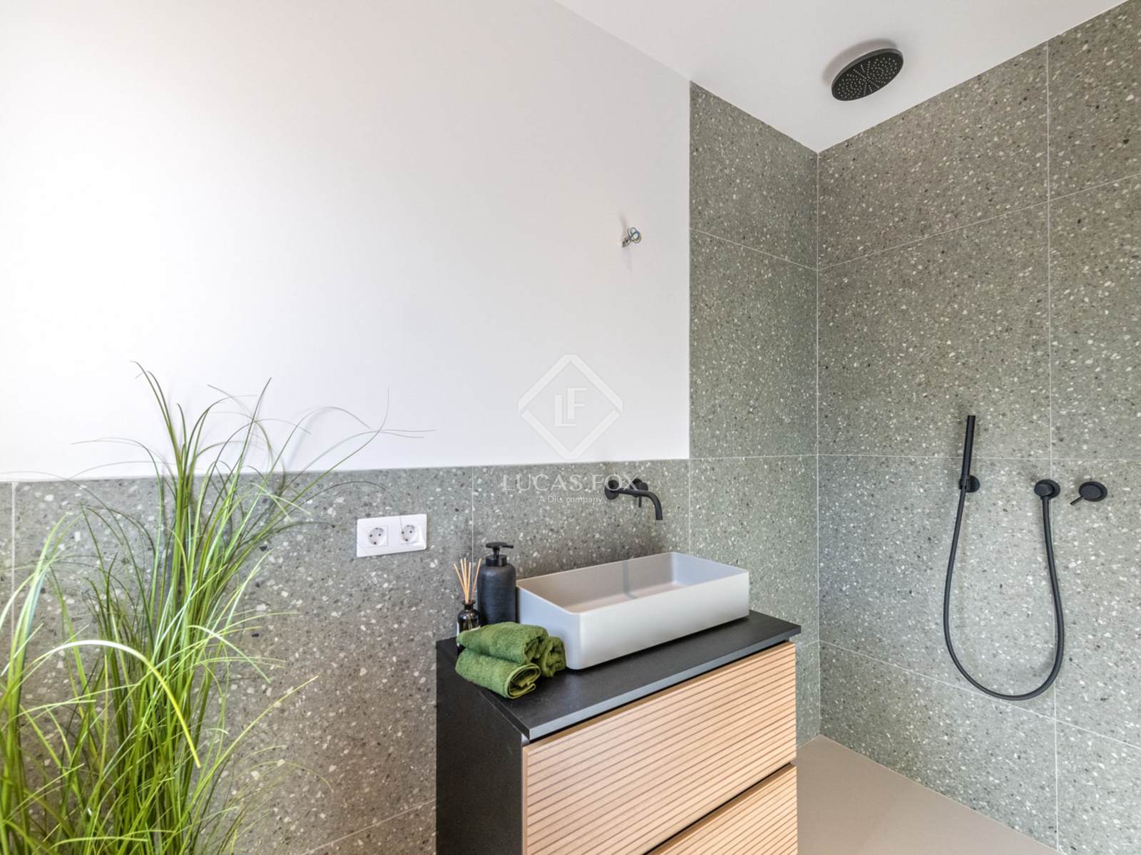 El comedor ofrece acceso directo a la terraza y a la zona de la piscina, lo que lo hace ideal para recibir invitados o disfrutar de comidas al aire libre. El área de la piscina está rodeada por un hermoso jardín paisajístico, lo que proporciona un espacio al aire libre tranquilo y privado. También en esta planta hay un dormitorio con vestidor y baño en suite.