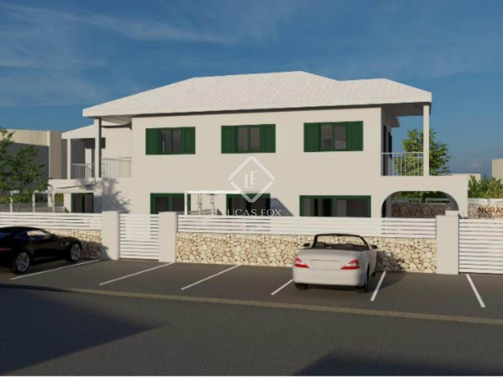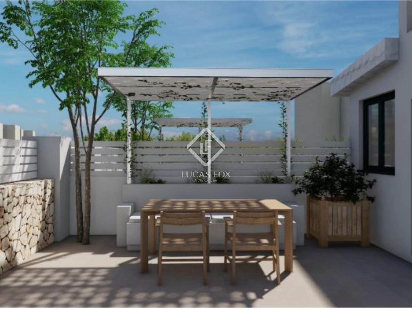 Piso de obra nueva con 1 dormitorio con terraza cubierta y espacio exterior chill-out en venta en un complejo con piscina en Calan Blanes, Ciutadella de Menorca.